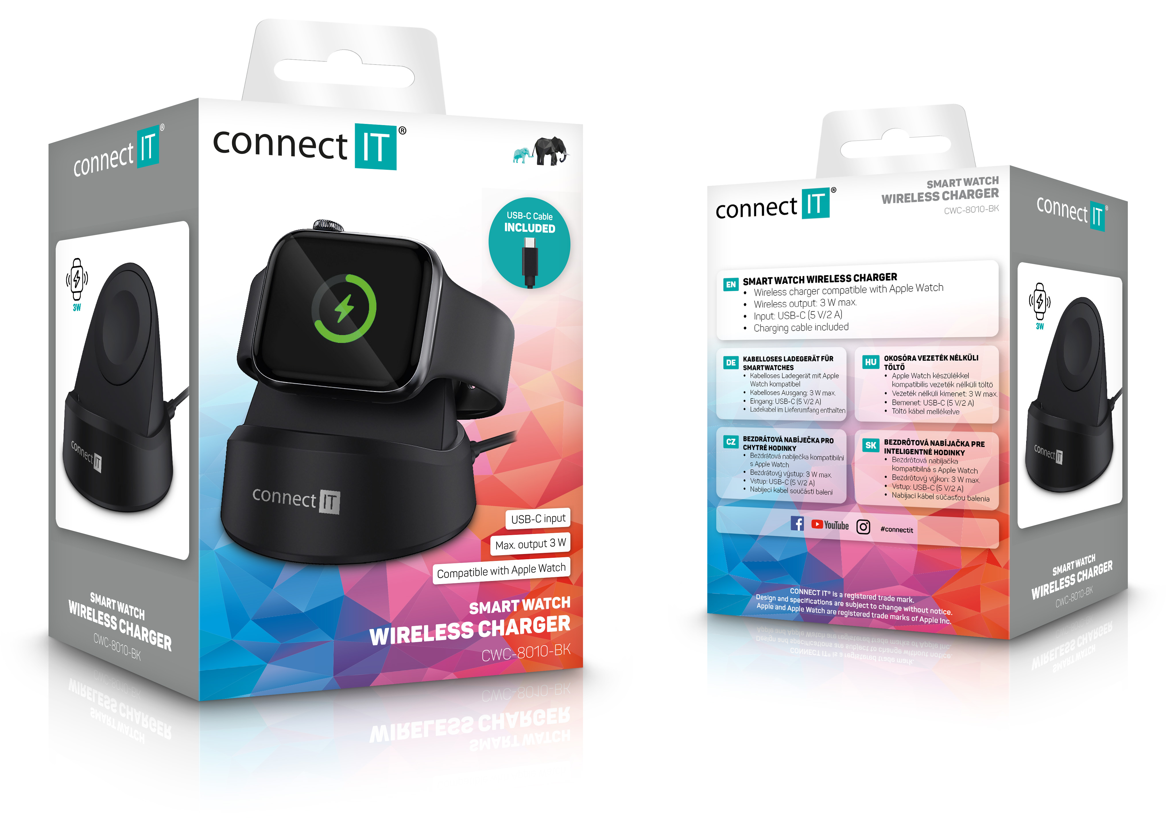 Technické údaje: Bezdrátové nabíjení; Kompatibilní s hodinkami Apple Watch; Inteligentní obvod Smart IC detekuje proudovou potřebu připojených zařízení a automaticky přerozděluje proud s cílem nabíjení nejrychlejším možným způsobem; Gumová protiskluzová základna; Čtyřnásobná ochrana:; FOD (Foreign Object Detection).