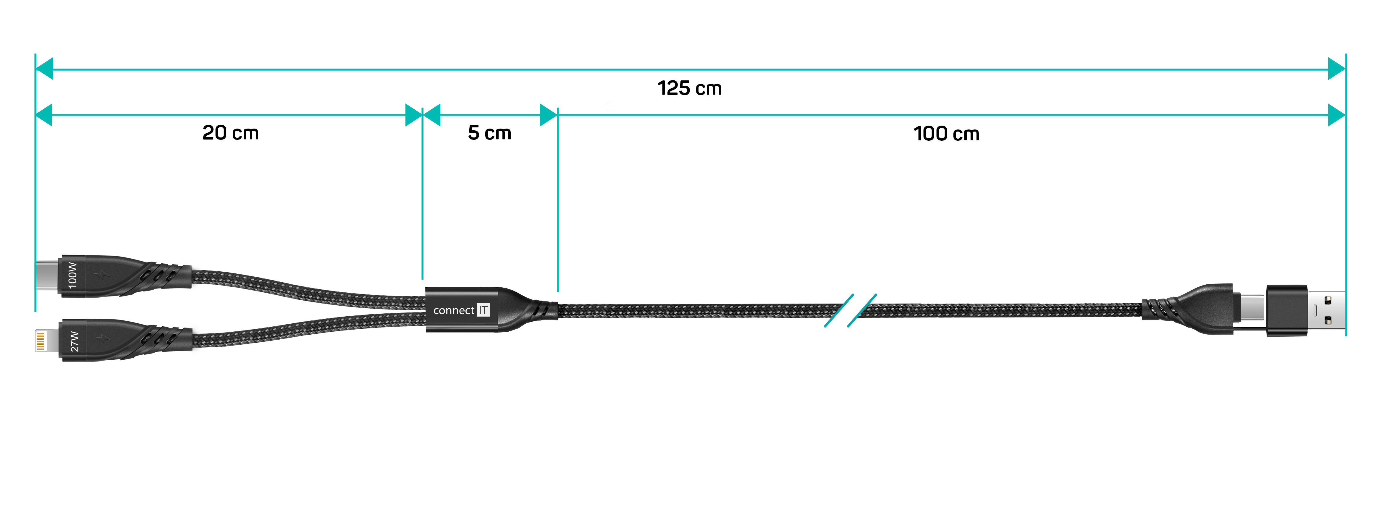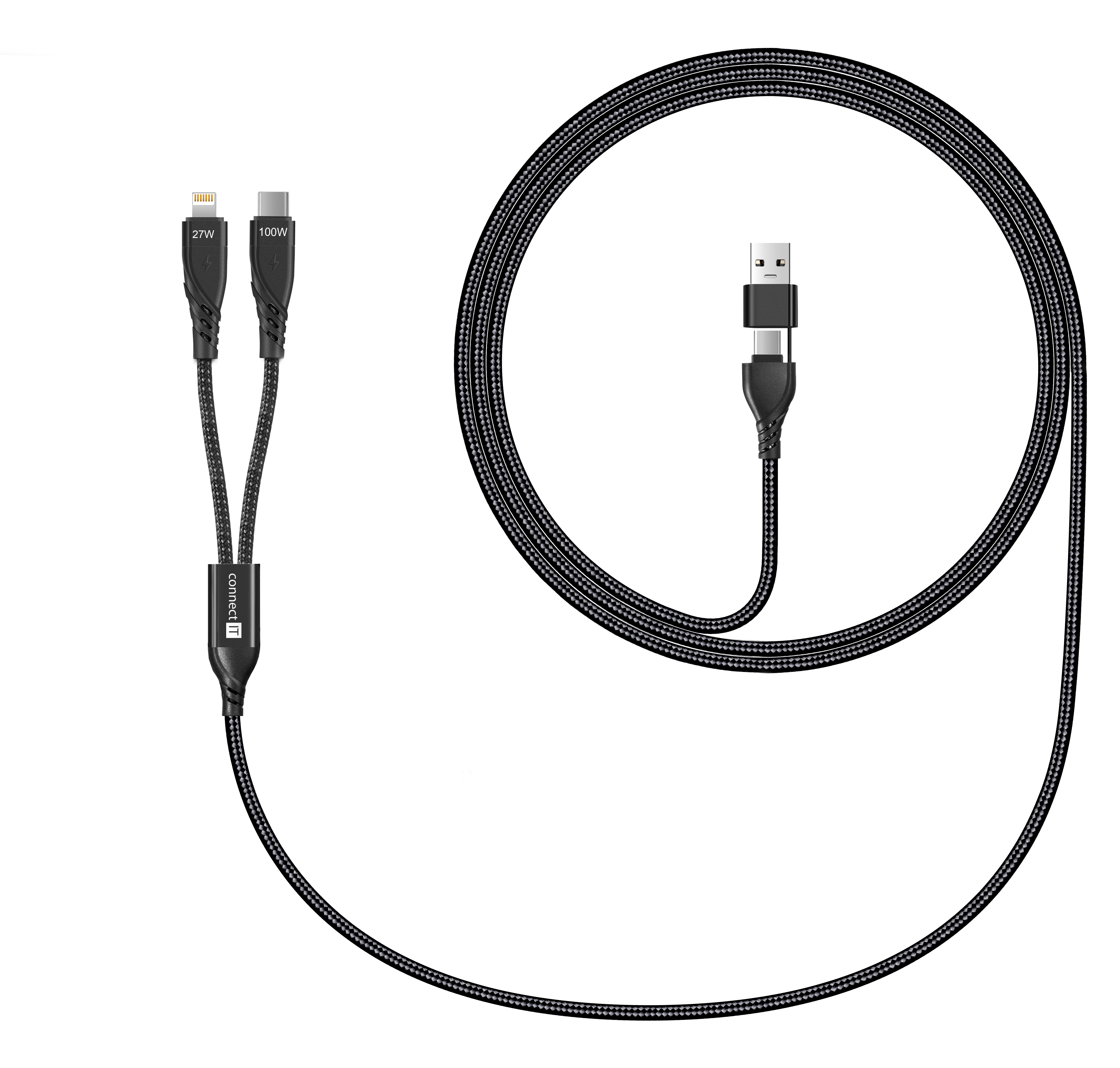 CONNECT IT Wirez 4in1 1x USB-C, 1x Lightning, 1,25 m - Černá