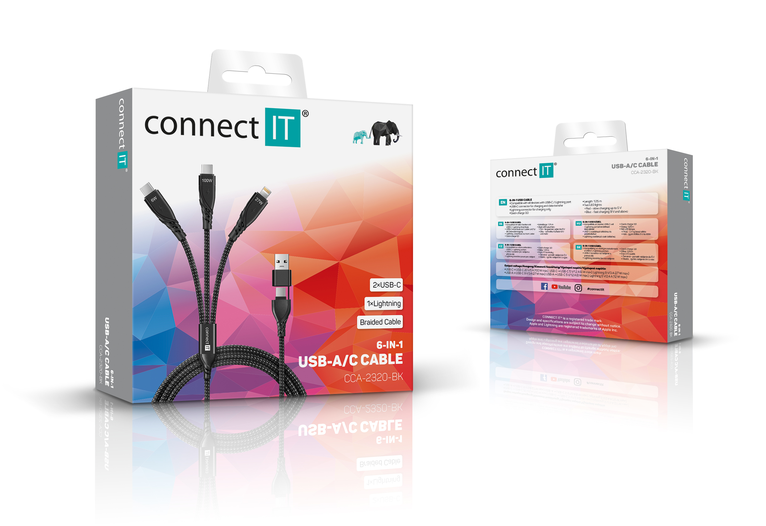 CONNECT IT Wirez 6in1 2x USB-C, 1x Lightning, 1,25 m - Černá