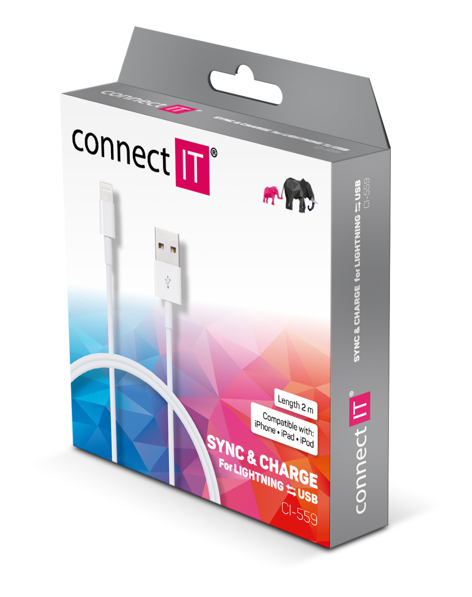CONNECT IT Wirez Apple Lightning - USB, 2m - Bílá