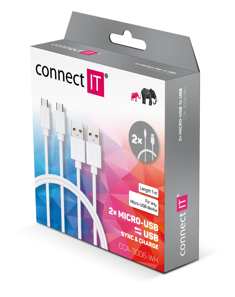 CONNECT IT Wirez Micro USB - USB, 1 m (2 ks v balení) - Bílá