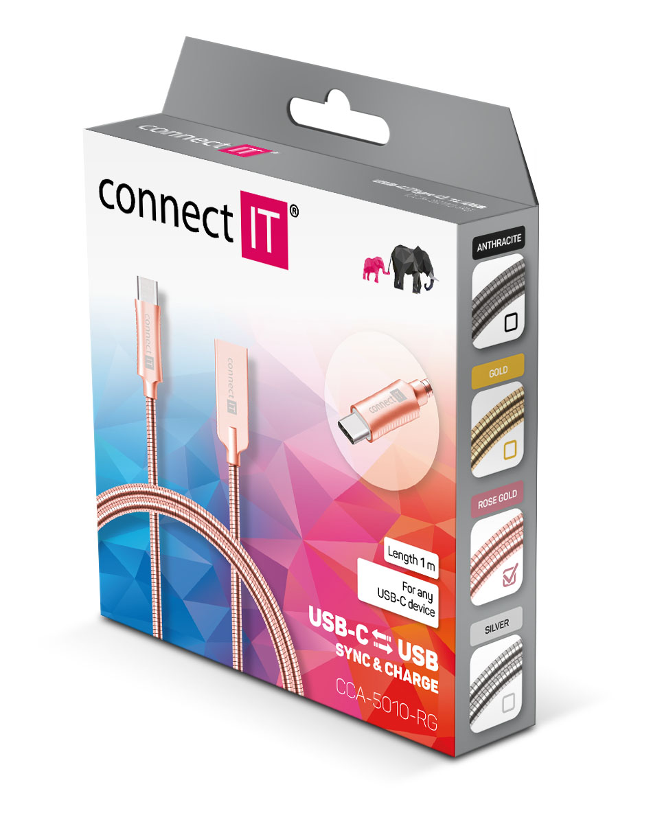 CONNECT IT Wirez Steel Knight USB-C (Type C) - USB-A, metallic, 1 m - Rose Gold