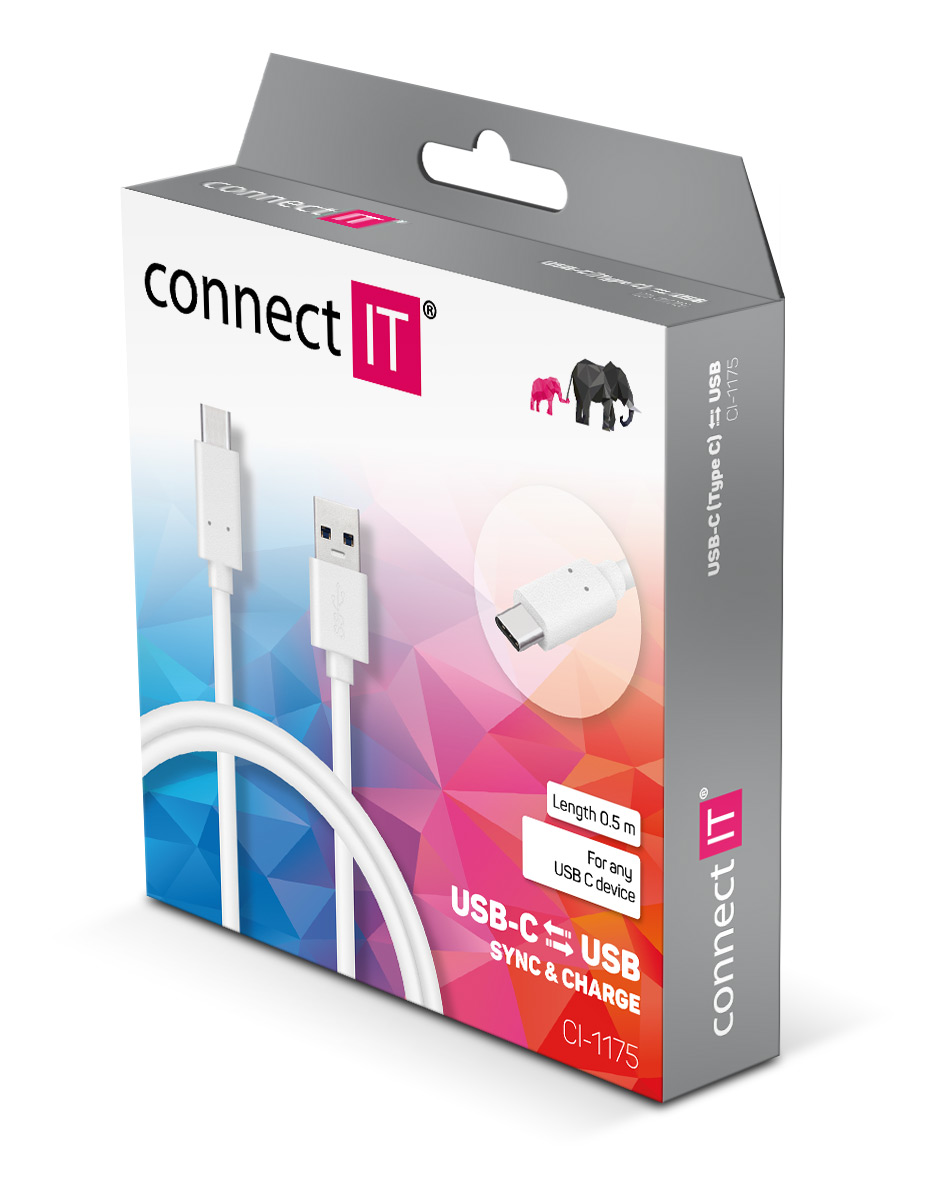 CONNECT IT Wirez USB-C (Type C) -> USB-A, USB 3.1 Gen 1, 0,5 m - Bílá