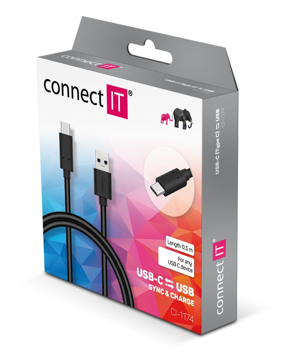 CONNECT IT Wirez USB-C (Type C) -> USB-A, USB 3.1 Gen 1, 0,5 m - Černá