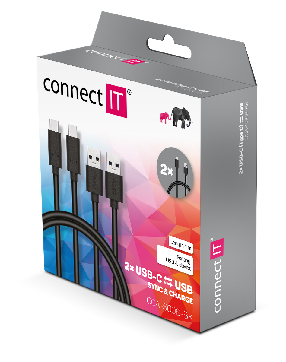 CONNECT IT Wirez USB-C (Type C) -> USB-A, USB 3.1 Gen 1, 1 m (2 ks v balení) - Černá