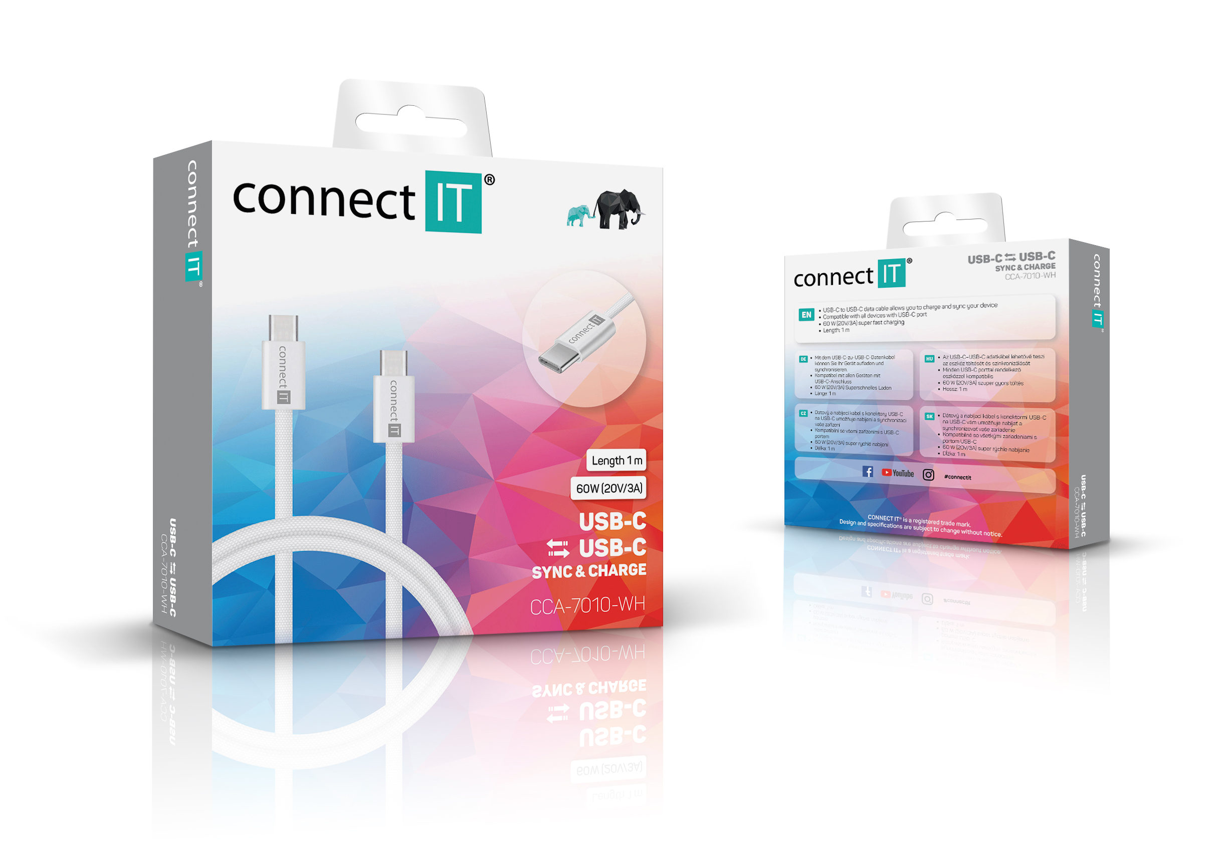 CONNECT IT Wirez USB-C -> USB-C, 60 W, 1 m - Bílá