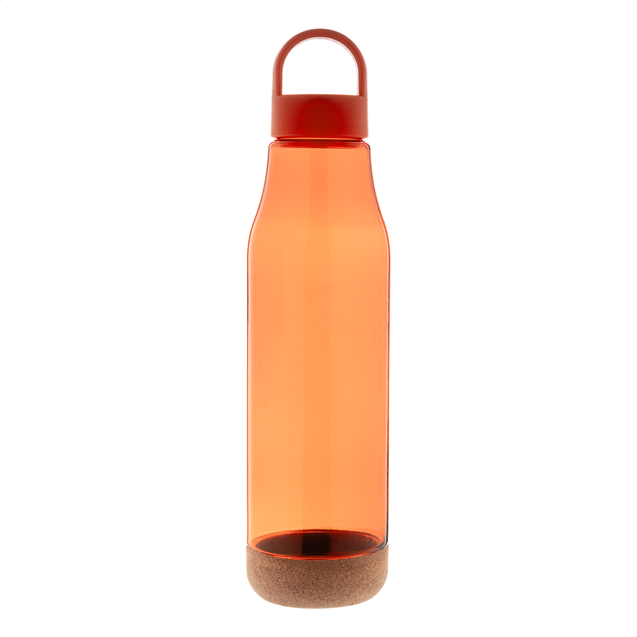 RPET láhev s přírodním korkem a PP plastovým víkem. 720 ml. Nevhodné pro sycené nápoje.