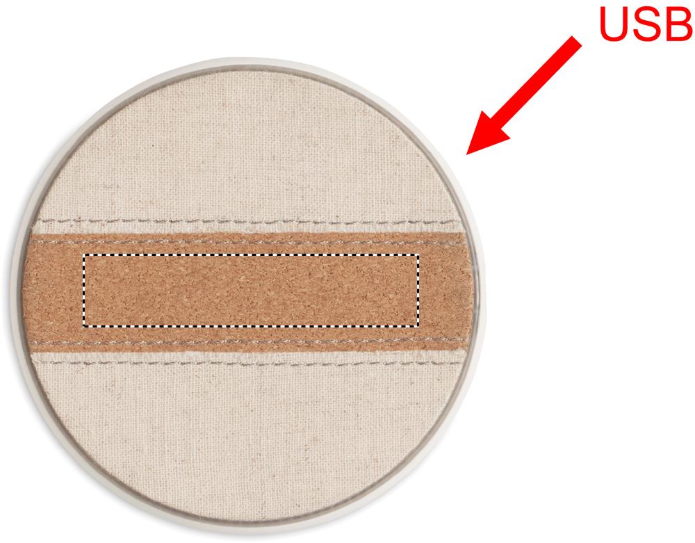 Bezdrátová 15W nabíječka z recyklovaného ABS s detaily z bavlny a korku. Připojte ji k počítači, položte na ni chytrý telefon a nechte jej nabíjet. Výstup: DC 9V/1,67A.