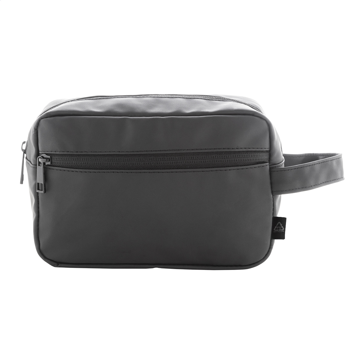 Kosmetická taštička z měkké recyklované PU kůže se dvěma přihrádkami na zip a uchem. S výrazným recyklovaným PU štítkem.