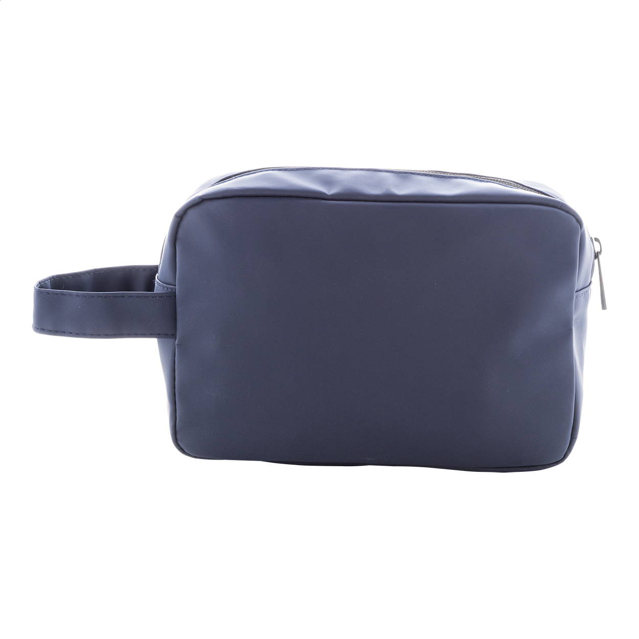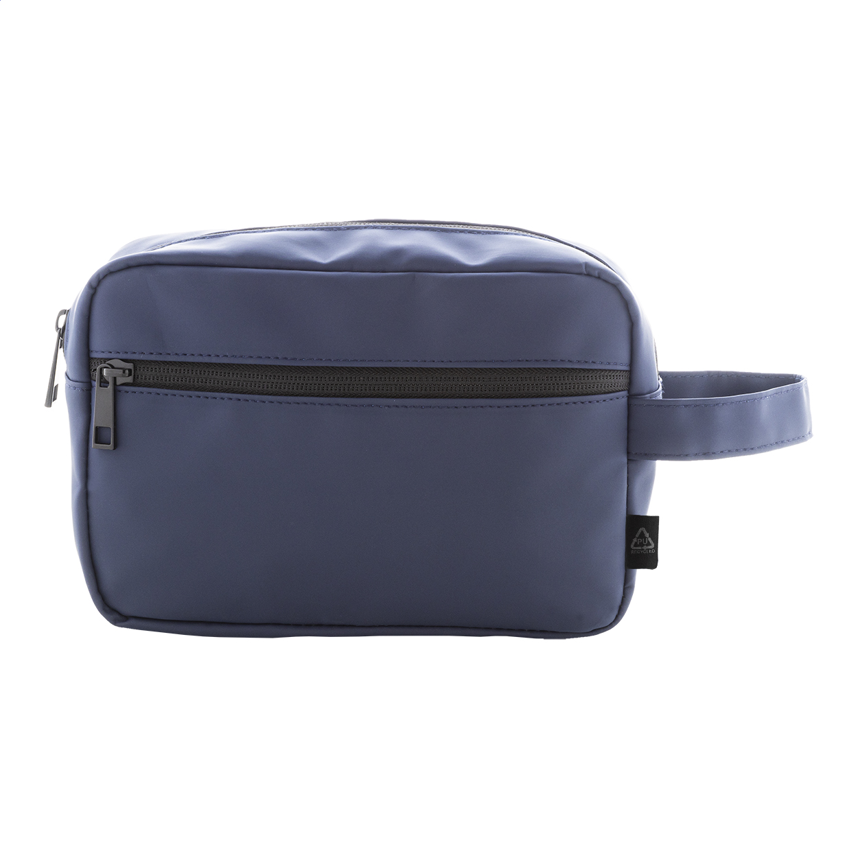 Kosmetická taštička z měkké recyklované PU kůže se dvěma přihrádkami na zip a uchem. S výrazným recyklovaným PU štítkem.