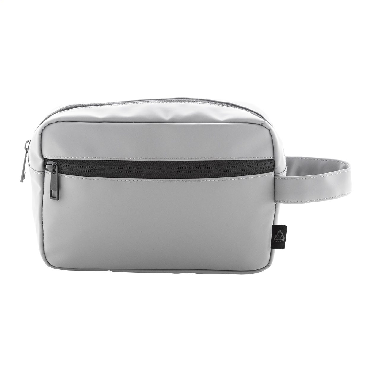 Kosmetická taštička z měkké recyklované PU kůže se dvěma přihrádkami na zip a uchem. S výrazným recyklovaným PU štítkem.