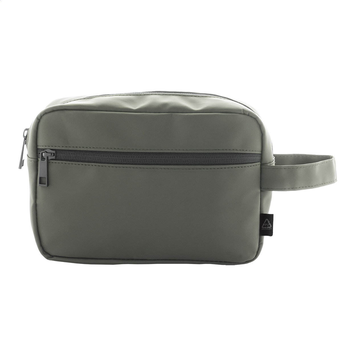 Kosmetická taštička z měkké recyklované PU kůže se dvěma přihrádkami na zip a uchem. S výrazným recyklovaným PU štítkem.