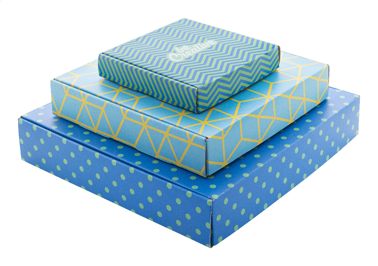 Na zakázku vyrobená, plnobarevně potištěná tenká dárková krabička z vlnité lepenky se samolepicí páskou. Cena nezahrnuje tiskovou přípravu. Dodává se rozložená. Min. mn.: 50 ks.