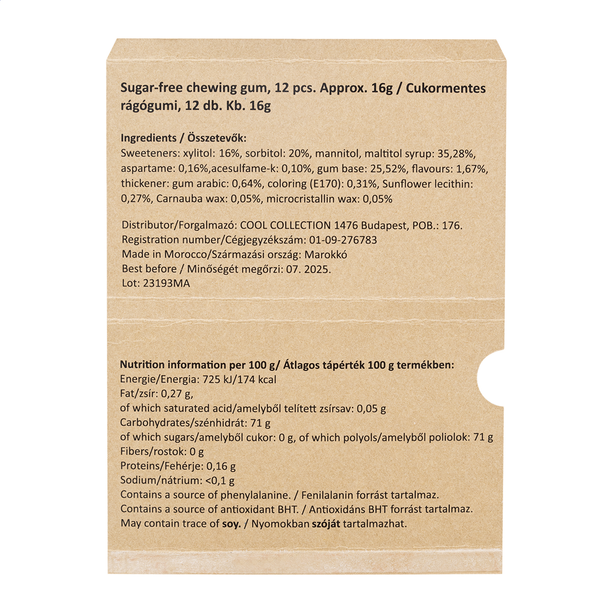 Žvýkačka v kraftovém papírovém obalu vyrobeném na zakázku.