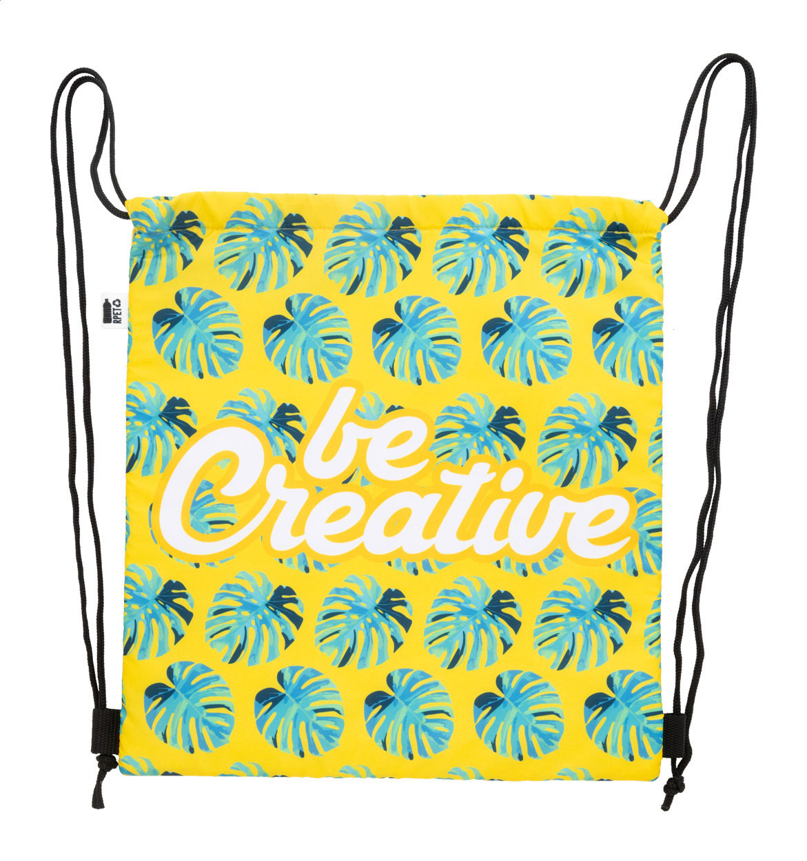 Na zakázku vyrobený chladicí vak se stahovací šňůrkou z 600D RPET polyesteru s hliníkovou výplní. S celoplošně tištěnou sublimační grafikou a výrazným štítkem RPET, cena nezahrnuje tiskovou přípravu. Min. mn.: 25 ks.