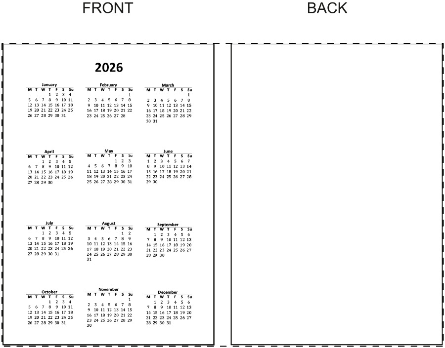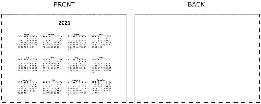 Kapesní papírový kalendář (270 g/m²) na zakázku s plnobarevnou grafikou. Cena zahrnuje digitální tisk na obou stranách, nezahrnuje tiskovou přípravu. Min. mn.: 250 ks.