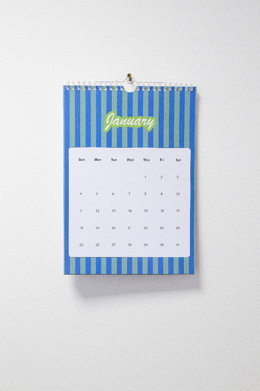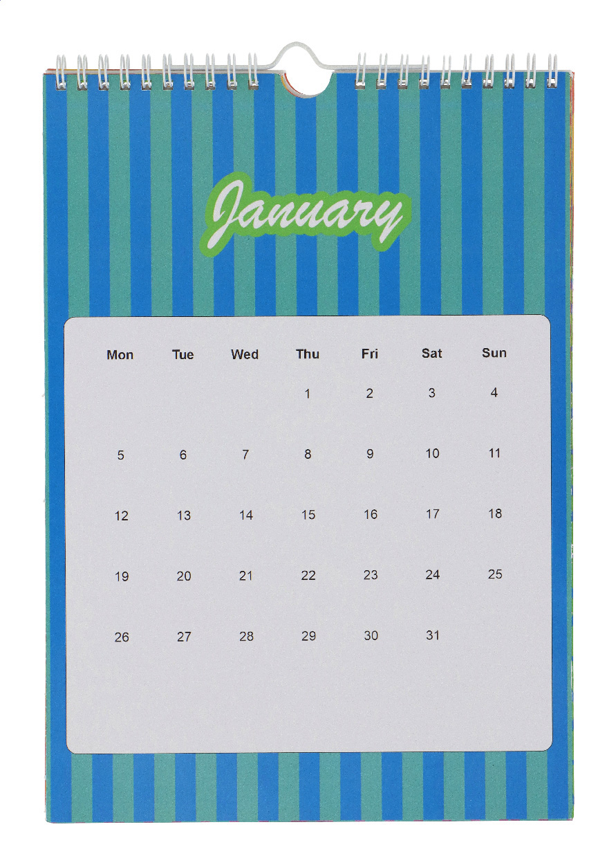 Spirálově vázaný nástěnný kalendář A4 na zakázku s barevnou grafikou a závěsným háčkem. S 6 oboustrannými měsíčními listy a titulní stranou. Cena zahrnuje digitální tisk na všech stránkách, nezahrnuje tiskovou přípravu. Min. mn.: 100 ks.