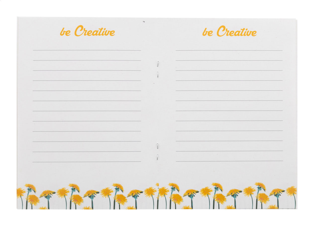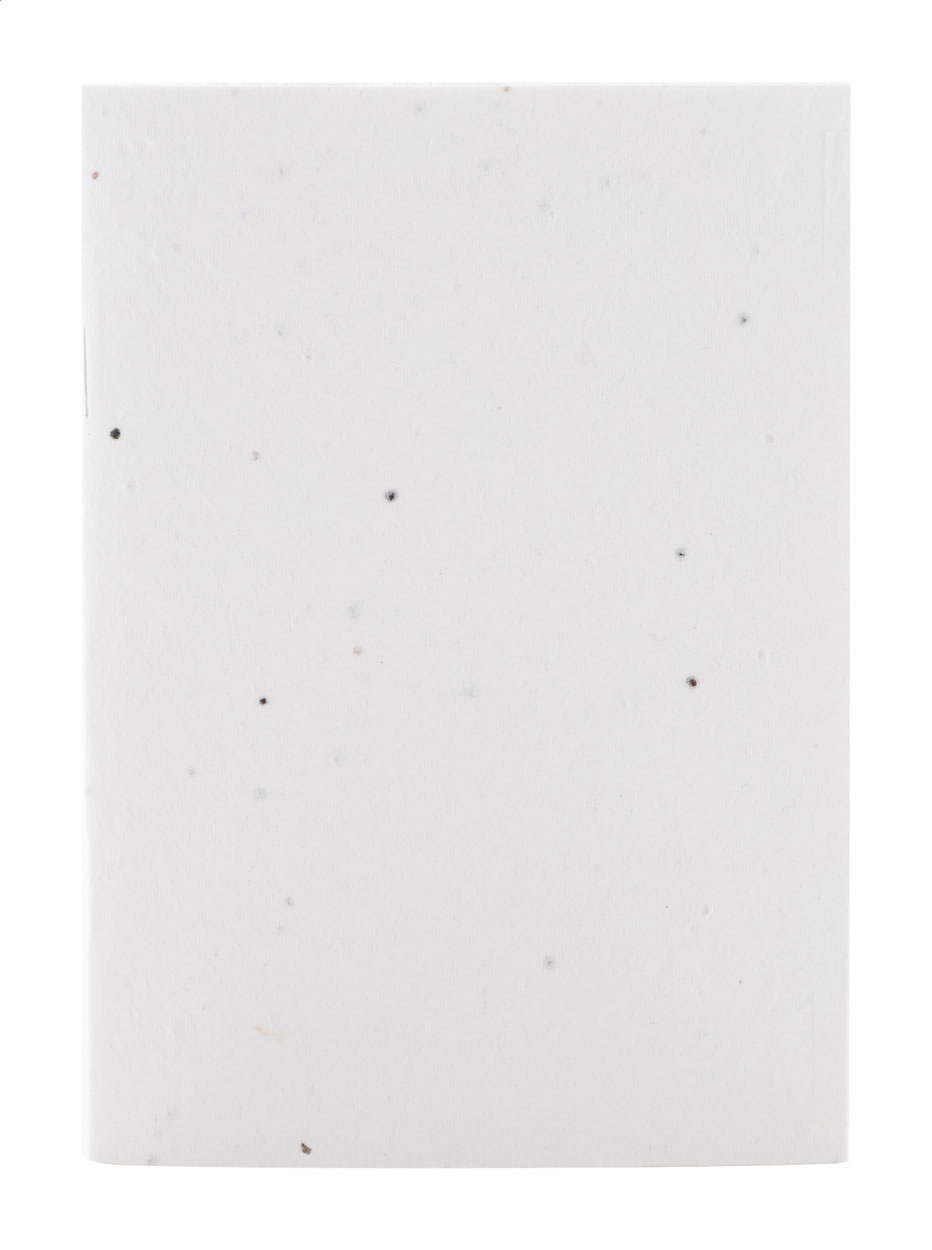 Na zakázku vyrobený zápisník s 32 listy z recyklovaného papíru, velikost A6. Cena zahrnuje plnobarevně potištěnou vnější obálku a stejný plnobarevný potisk na všech vnitřních stranách. MOQ: 100 ks. S různými semínky divokých květin.