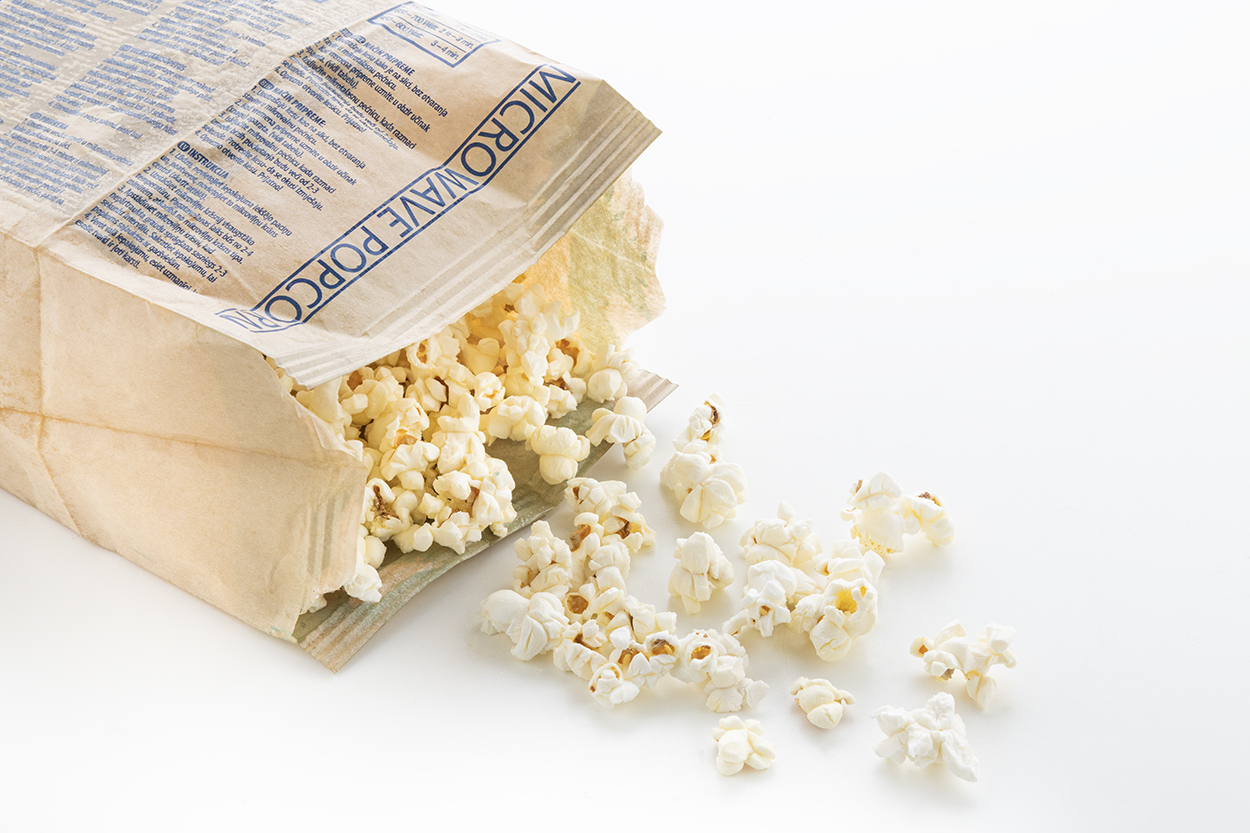 Jeden sáček soleného popcornu do mikrovlnné trouby (100 g) v barevném papírovém obalu s potiskem na zakázku. MOQ: 100 ks.