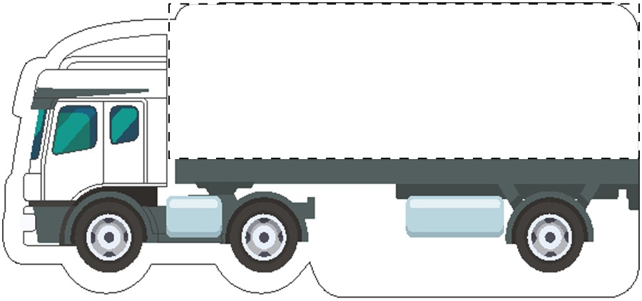 Magnet na ledničku ve tvaru nákladního auta s barevným potiskem a samolepicím blokem. Obsahuje 50 listů samolepících papírů z recyklovaného papíru (75×75 mm). Min. mn.: 100 ks.