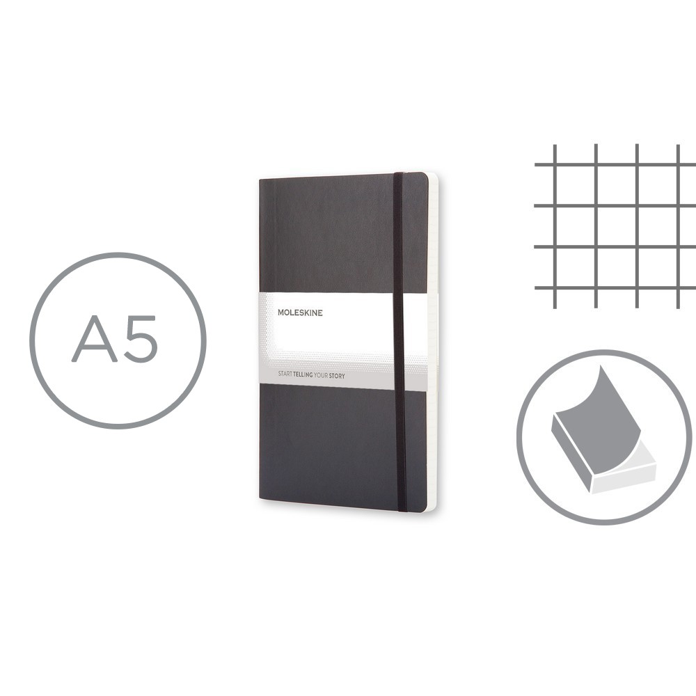 Čtverečkovaný zápisník v měkkých deskách Moleskine, cca A5, 192 str - černá