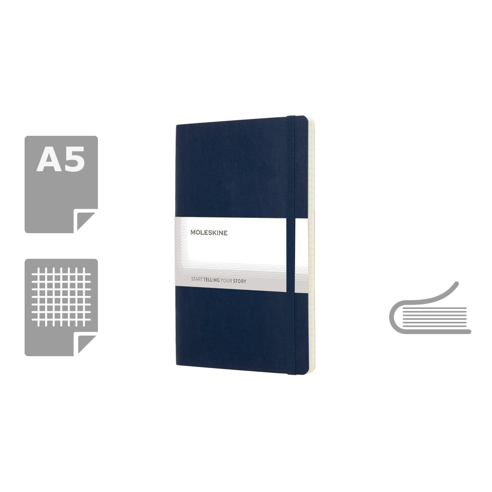 Čtverečkovaný zápisník v měkkých deskách Moleskine, cca A5, 192 str - tmavě modrá