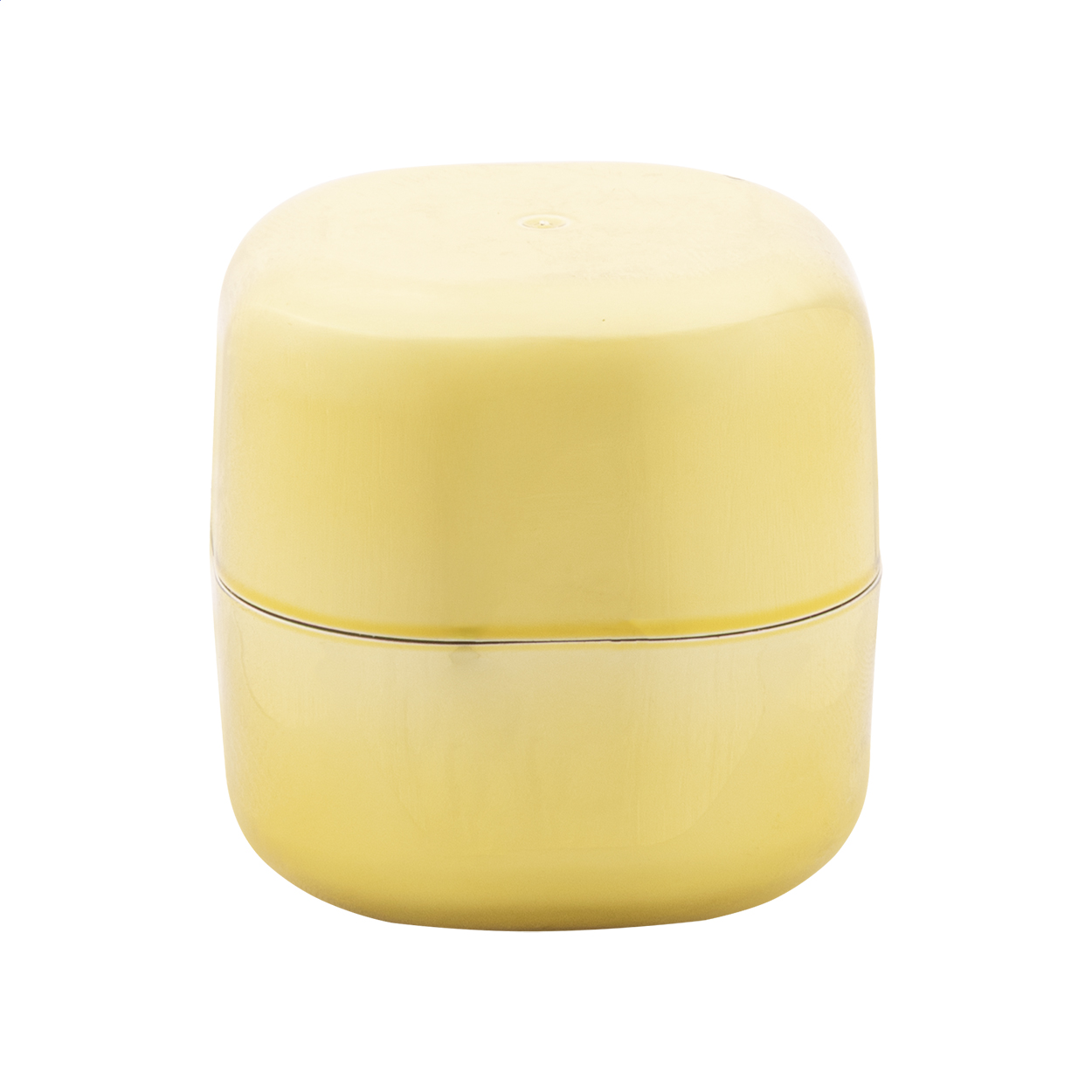 Vanilkový balzám na rty v metalickém ABS pouzdře ve tvaru krychle s ochranou SPF15. Produkt neobsahuje složky živočišného původu.