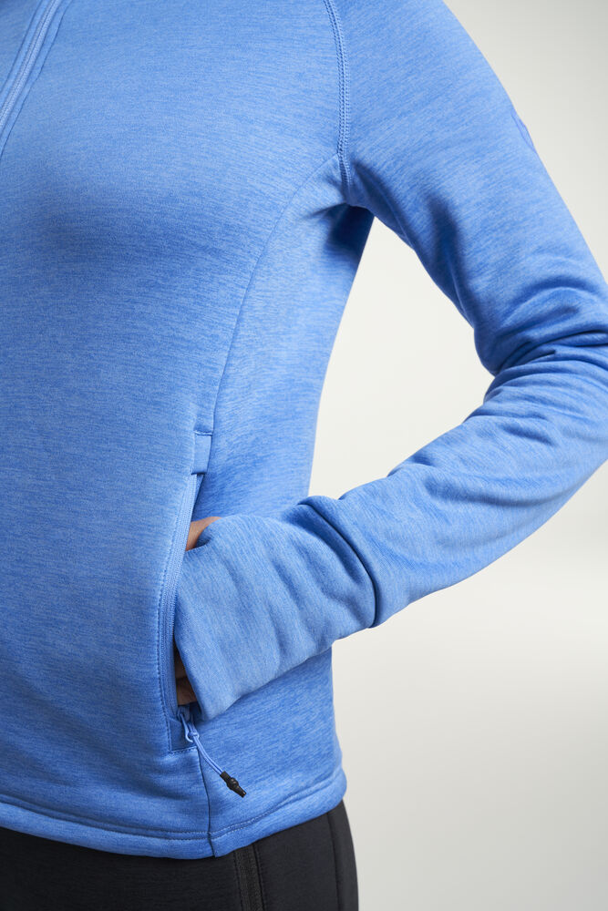 TXlite Hoodie Zip je dámská mikina s kapucí na zip, která perfektně padne. Je super elastická a opravdu pohodlná na nošení. Kapuce a spodní lem jsou nastavitelné a zip má skládaný šusťák. Pokud ji chcete nosit jako střední vrstvu, prodloužené rukávy s poutky na palec zabrání zachycení paží pod bundou. Má také dvě přední kapsy na zip, abyste neztratili své věci. Tato mikina na zip je skvělým příkladem dobrého stylu v kombinaci s praktickým designem.