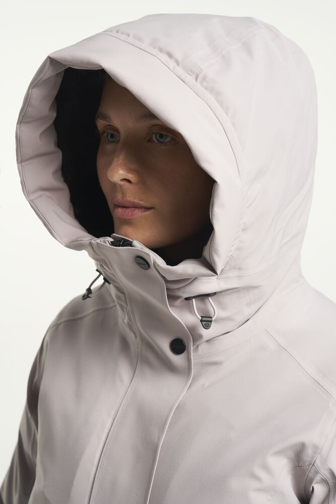 Nepromokavá parka s minimalistickým designem je dokonalým doplňkem vašeho šatníku a praktickou bundou na každý den. S touto bundou ve skříni budete elegantně oblečeni a vždy připraveni na nečekanou dešťovou přeháňku. Kapuci, rukávy a spodní lem si můžete snadno nastavit tak, aby vám správně seděly, a díky pružnému materiálu nebude vaše pohyblivost nijak omezena. Má dvě nenápadné náprsní kapsy pro pohodlné zahřátí rukou, dvě spodní kapsy pro úložný prostor a kapsu na zip na levé paži.