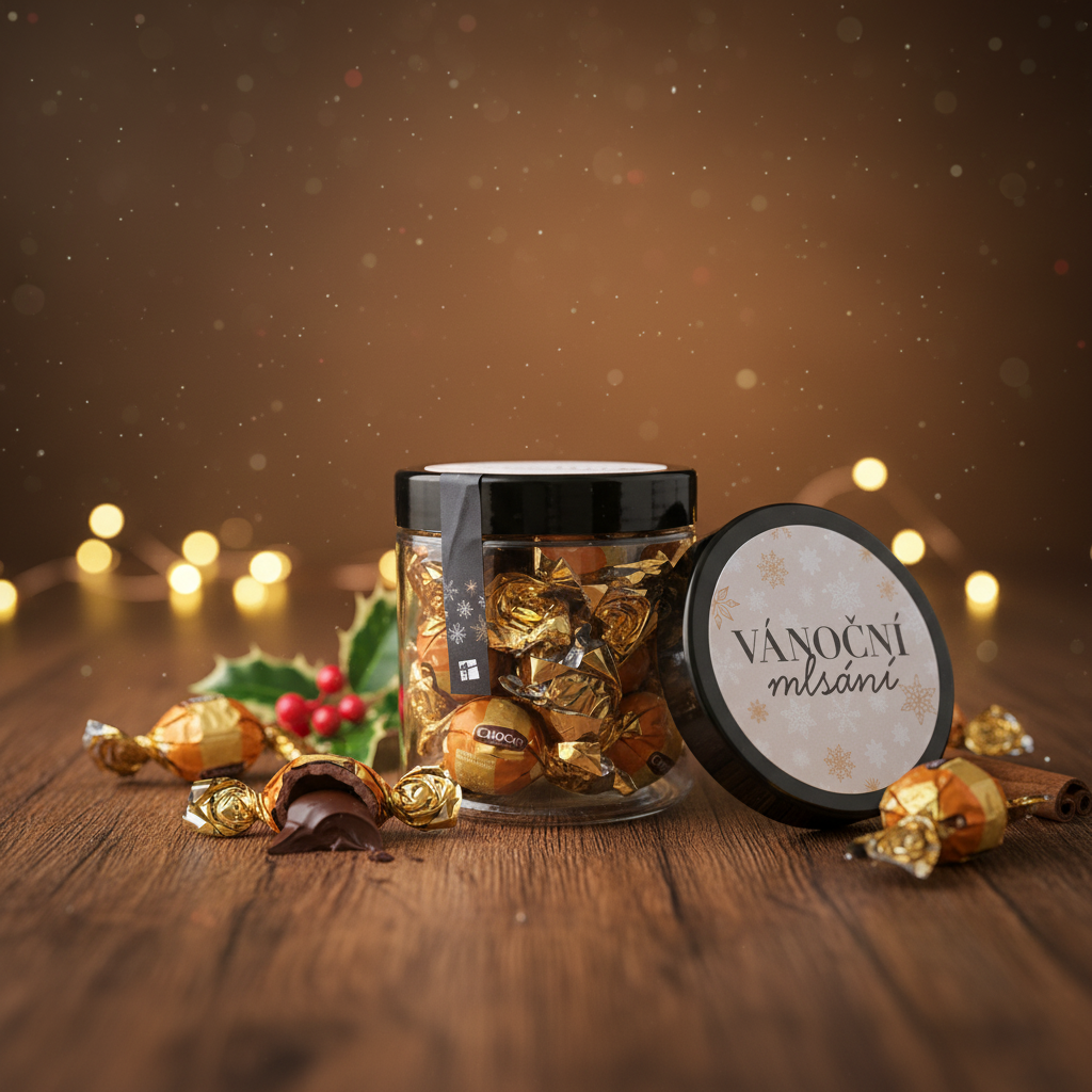 Elegantní jednoporcová dóza „ready to gift“ pro klienty, zaměstnance i osobní dárky. Pralinky v mixu příchutí balíme do průhledné dózy; na víčko nebo obal doplníme vaši samolepku či komplimentku (logo, přání, motiv kampaně). Grafiku zkontrolujeme a pošleme náhled ke schválení. Značka Dárkovna, vyrobeno v Česku.