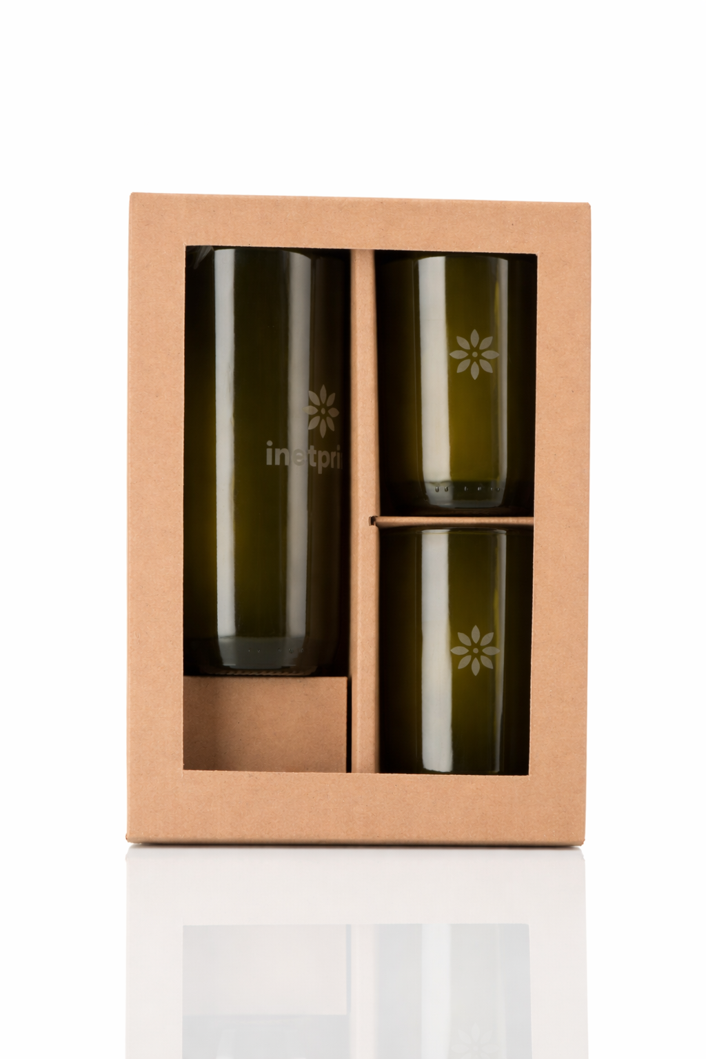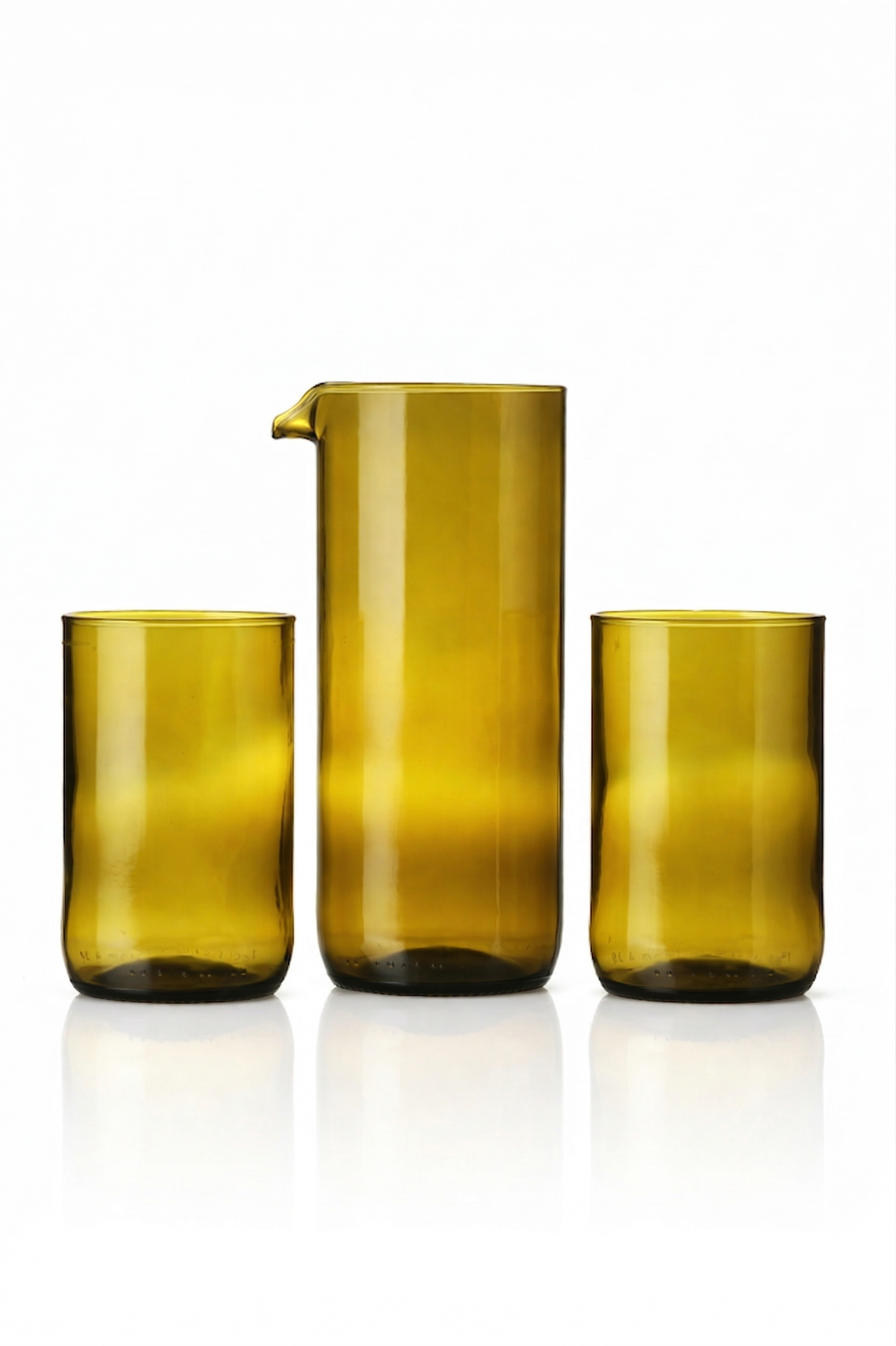Dárková sada karafa a dvě sklenice z lahve od vína 300 ml - olivová