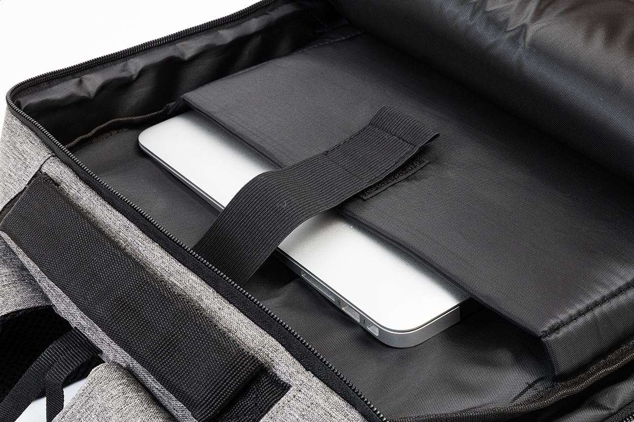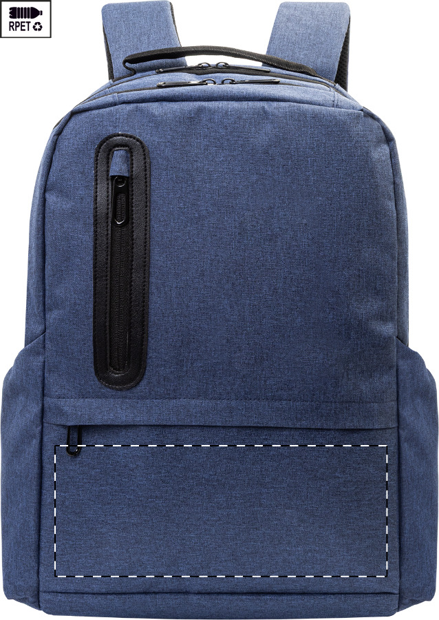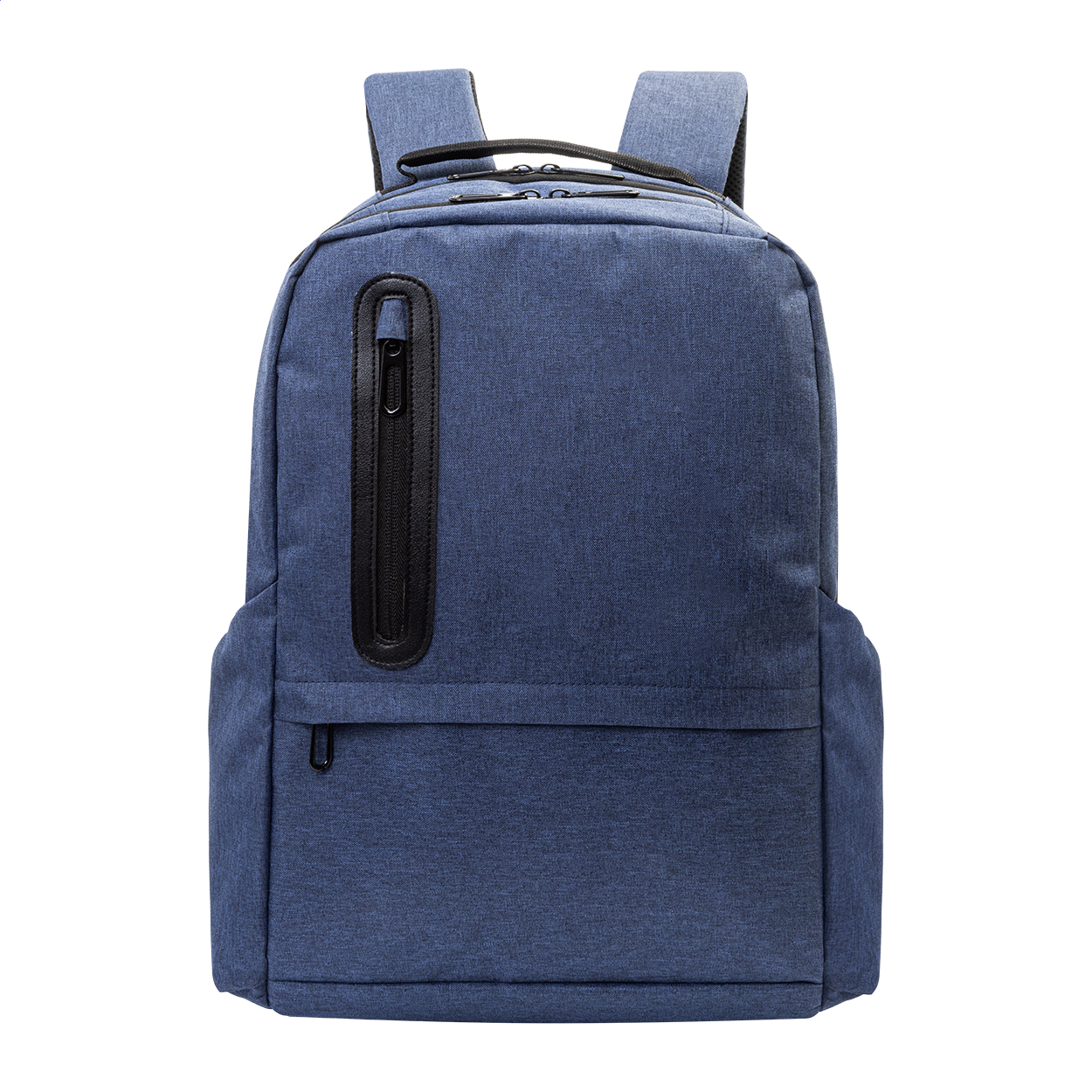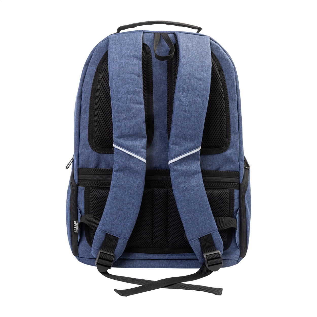Batoh z RPET s přihrádkami na zip, 2 předními kapsami na zip, bočními kapsami na zip a polstrovanou přihrádkou na notebook (15"). S polstrovanými zády a ramenními popruhy, kapsou s ochranou proti krádeži a popruhem na kufr. Z polyesteru 300D RPET s výrazným štítkem RPET.