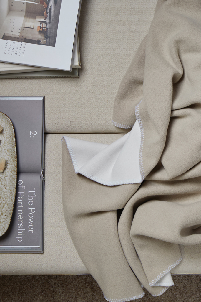 Dvoubarevná deka v béžové a barvě feather grey vnáší do domova pocit čistoty a minimalismu. Použitý 100% recyklovaný polyester splňuje přísné normy GRS a vyznačuje se povrchem, který je neuvěřitelně jemný a zároveň vysoce odolný.