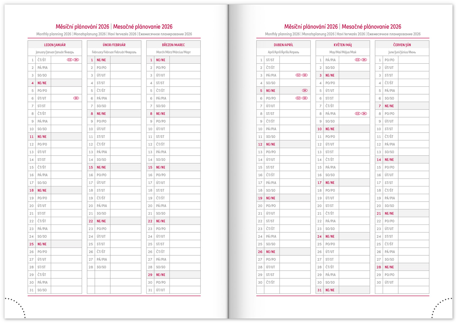 | Jazyk kalendária | Český, Slovenský, Anglický |