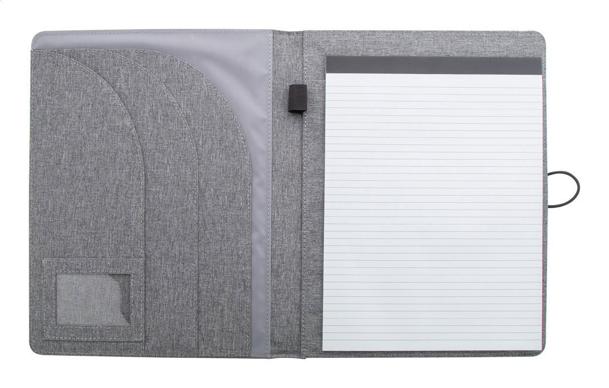 Polyesterová sloha na dokumenty formátu A4 vyrobená z RPET (recyklovaný PET materiál) s poznámkovým blokem s 20 linkovanými listy.