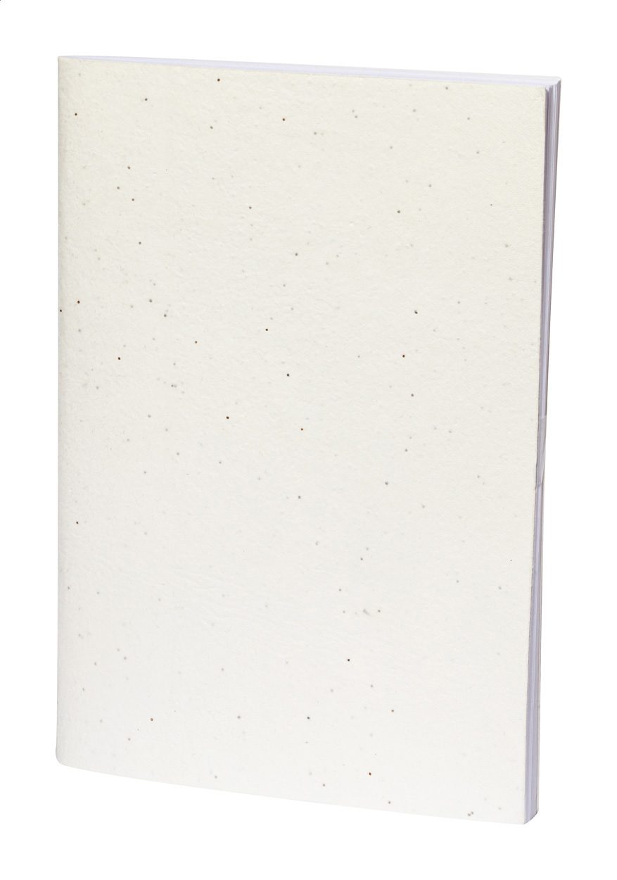 Blok A5 potažený semenným papírem s 60 prázdnými listy. Obal semenného papíru obsahuje semena petúnie v různých barvách, která lze zasadit oddělením obalu od sešitu.