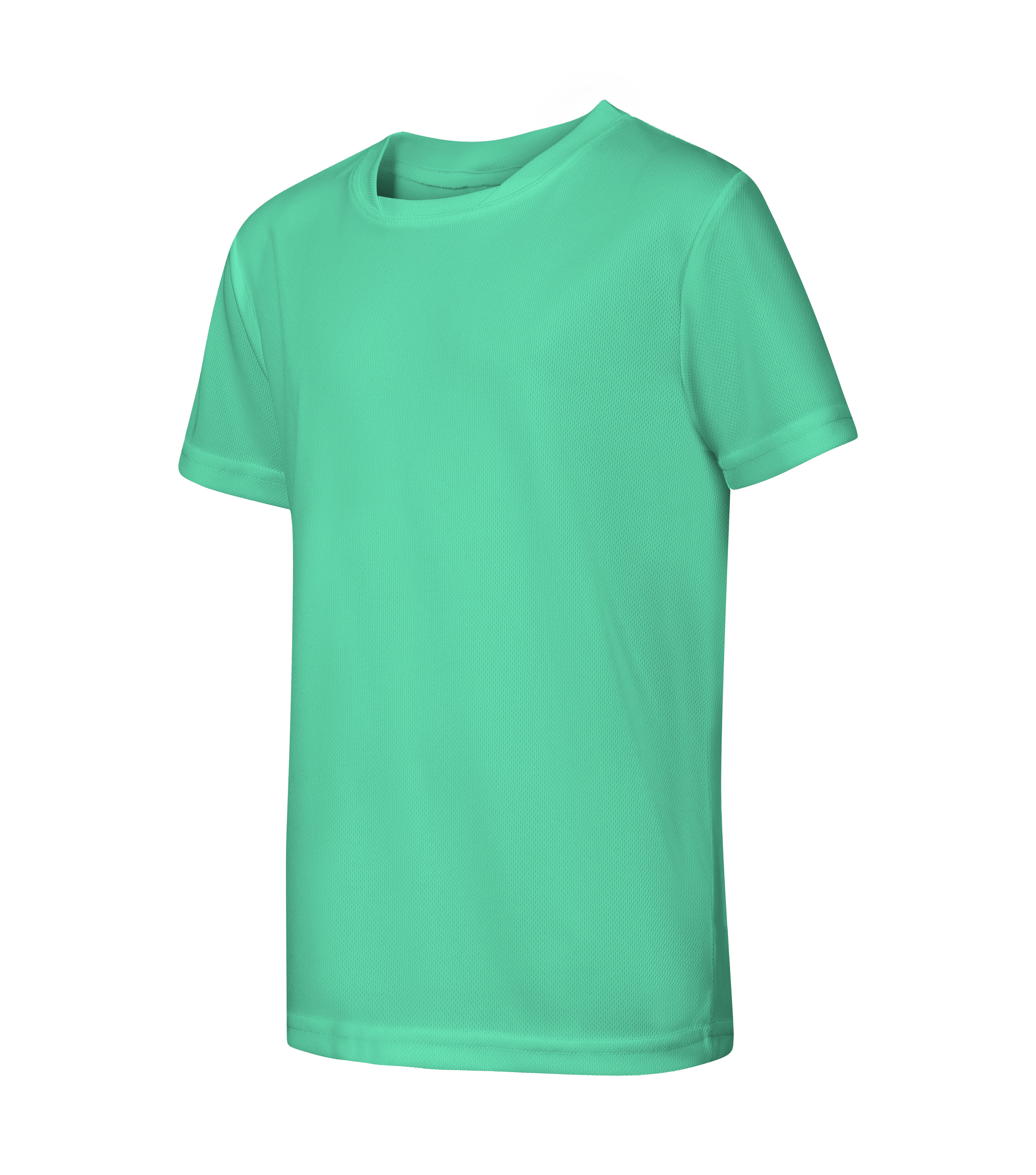 Dětské tričko z rychleschnoucího materiálu, díky kterému je vhodné pro sport a další pohybové aktivity. Tričko má střih s bočními švy, neobvykle členěný průkrčník a ramenní švy zpevněné páskou. Světlé barvy jsou vhodné pro sublimační potisk.