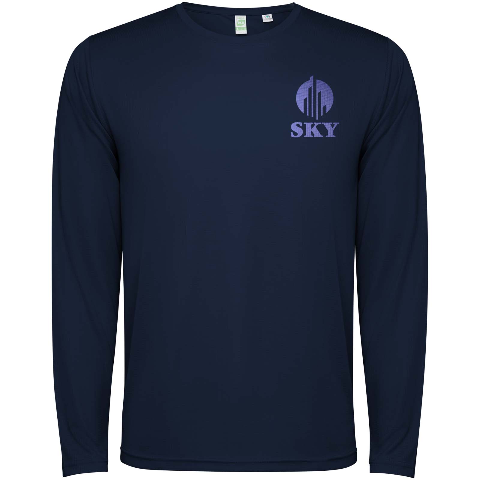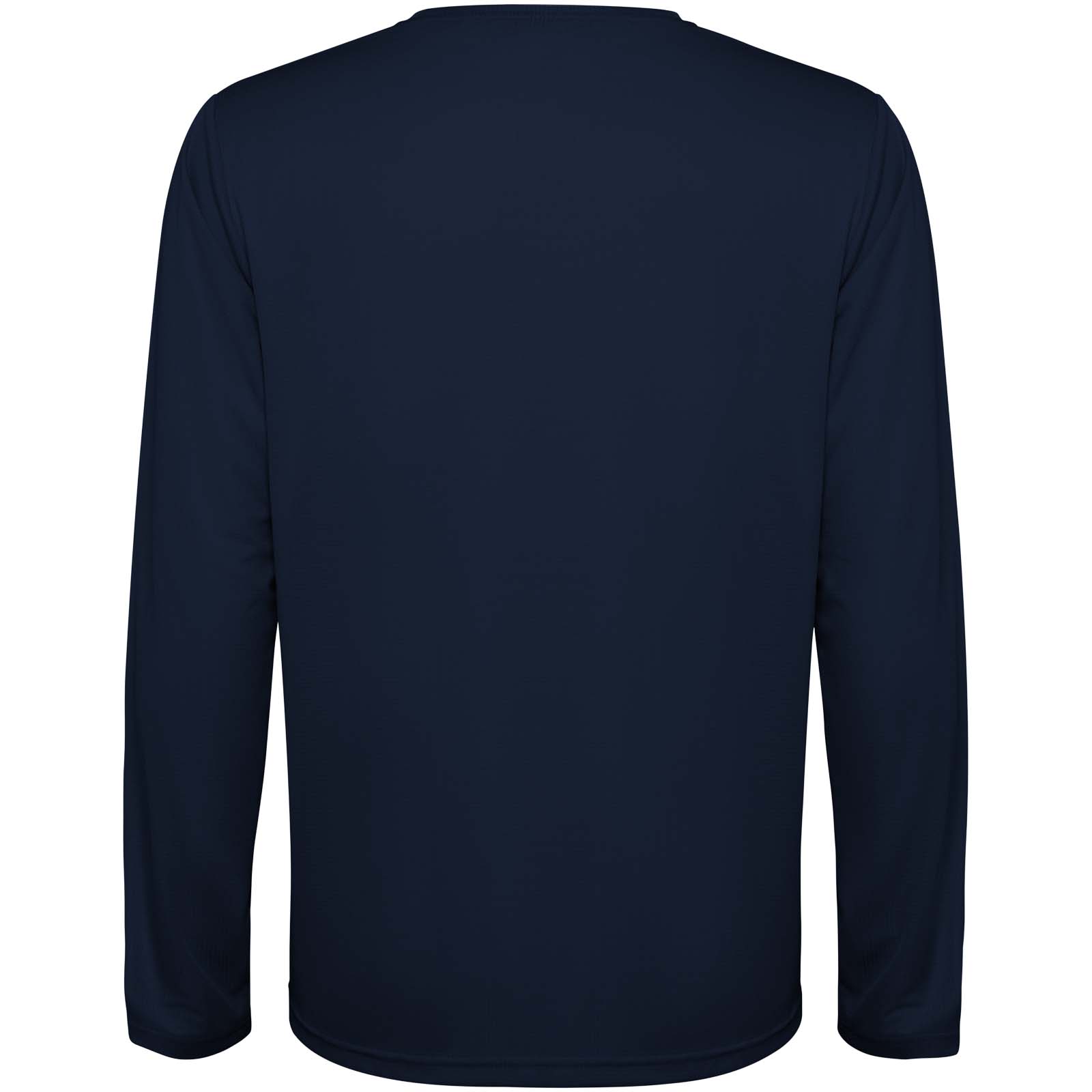 Kids long-sleeve unisex technical t-shirt. Collar with matching seams. Back hem slightly longer than the front. Side seams shifted forward.