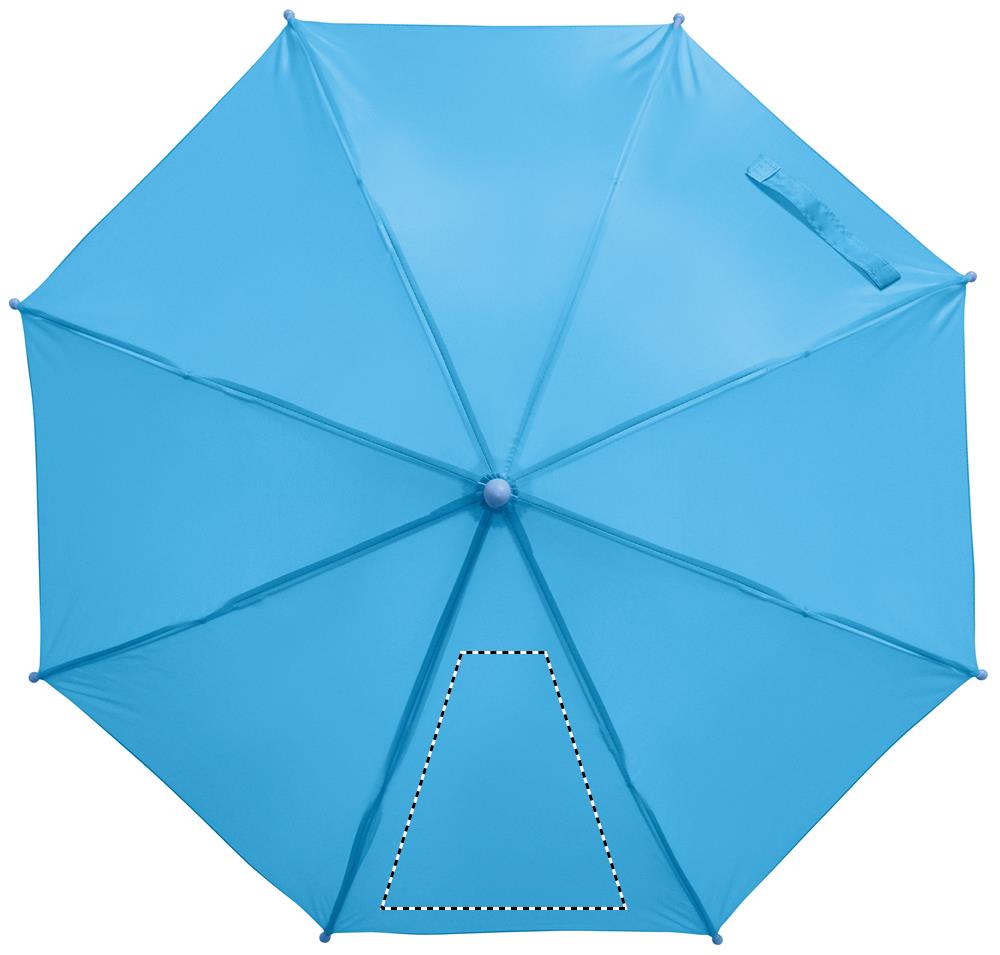 18palcový dětský deštník s automatickým otevíráním. Kovová tyč a žebra, polyester 190T. Rukojeť, špičky a vrchní část z PP.