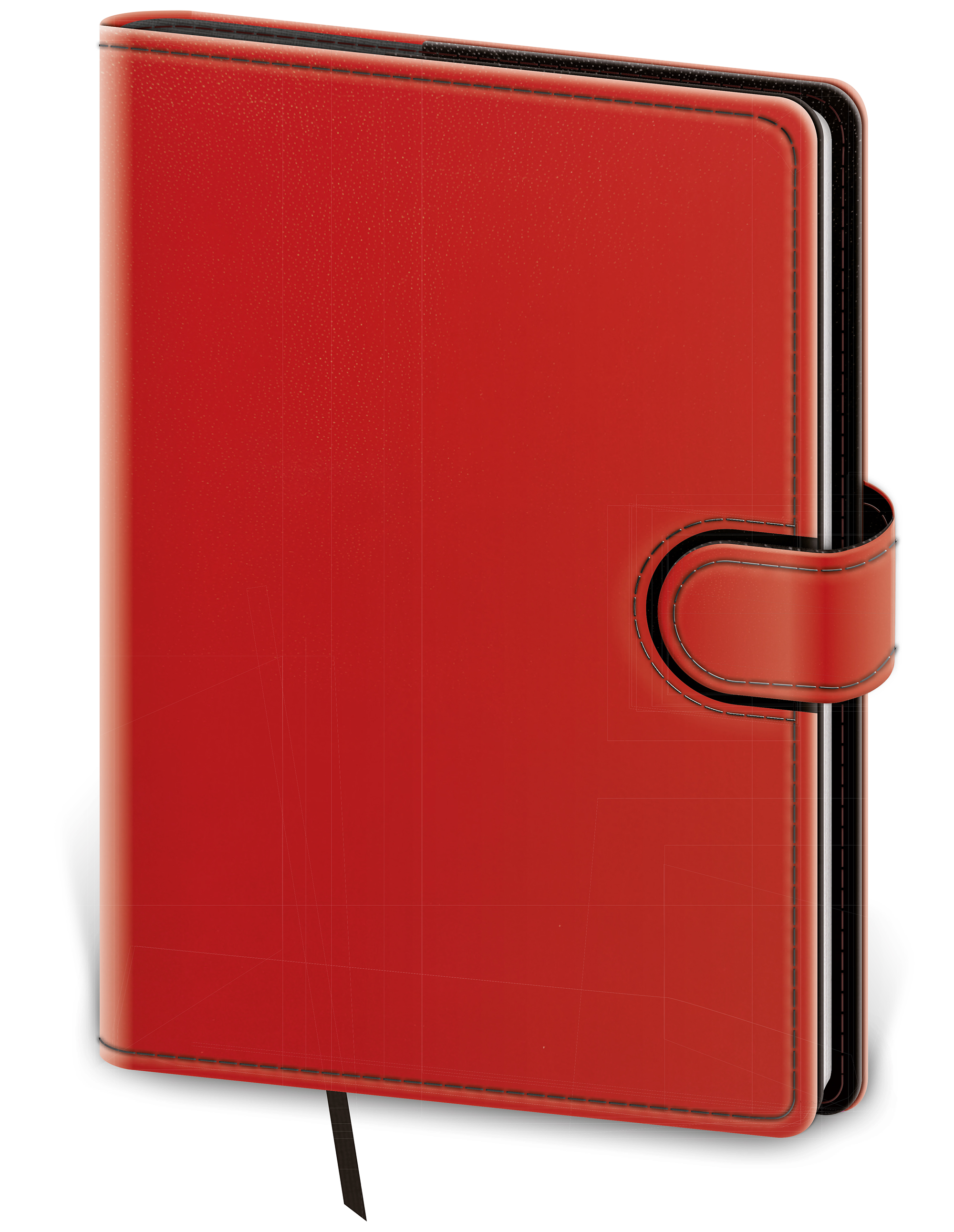 Elegantní denní diář ve formátu A5 se stylovým a znovupoužitelným obalem v červené barvě. Praktické vnitřní uspořádání nabízí množství přihrádek na vizitky, poutko na tužku a bezpečné magnetické zavírání. Diář bude působit luxusně a profesionálně – ideální volba pro práci, podnikání i osobní organizaci.