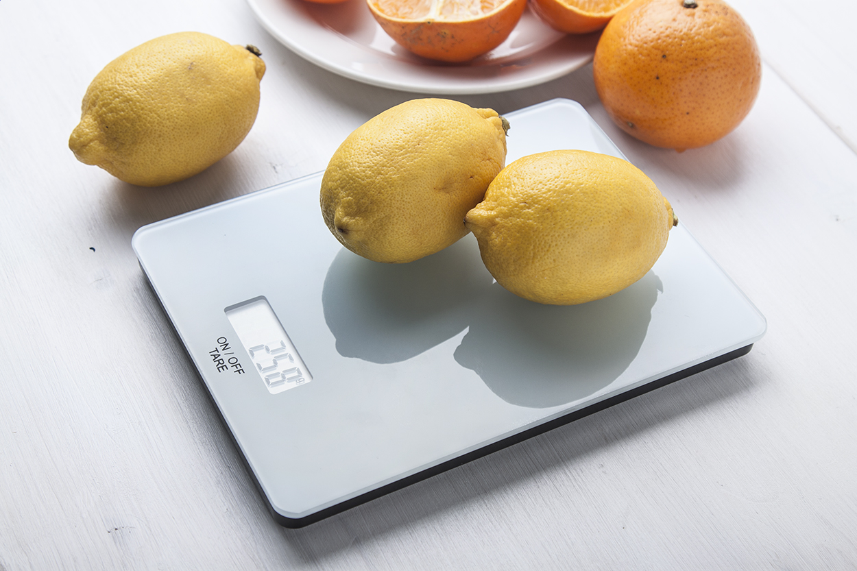 Digitální kuchyňská váha s povrchem z tvrzeného skla. Váhový limit 5 kg, stupnice po 1 g, měrné jednotky gramy/unce. Dodáváno bez 2 AAA baterií.