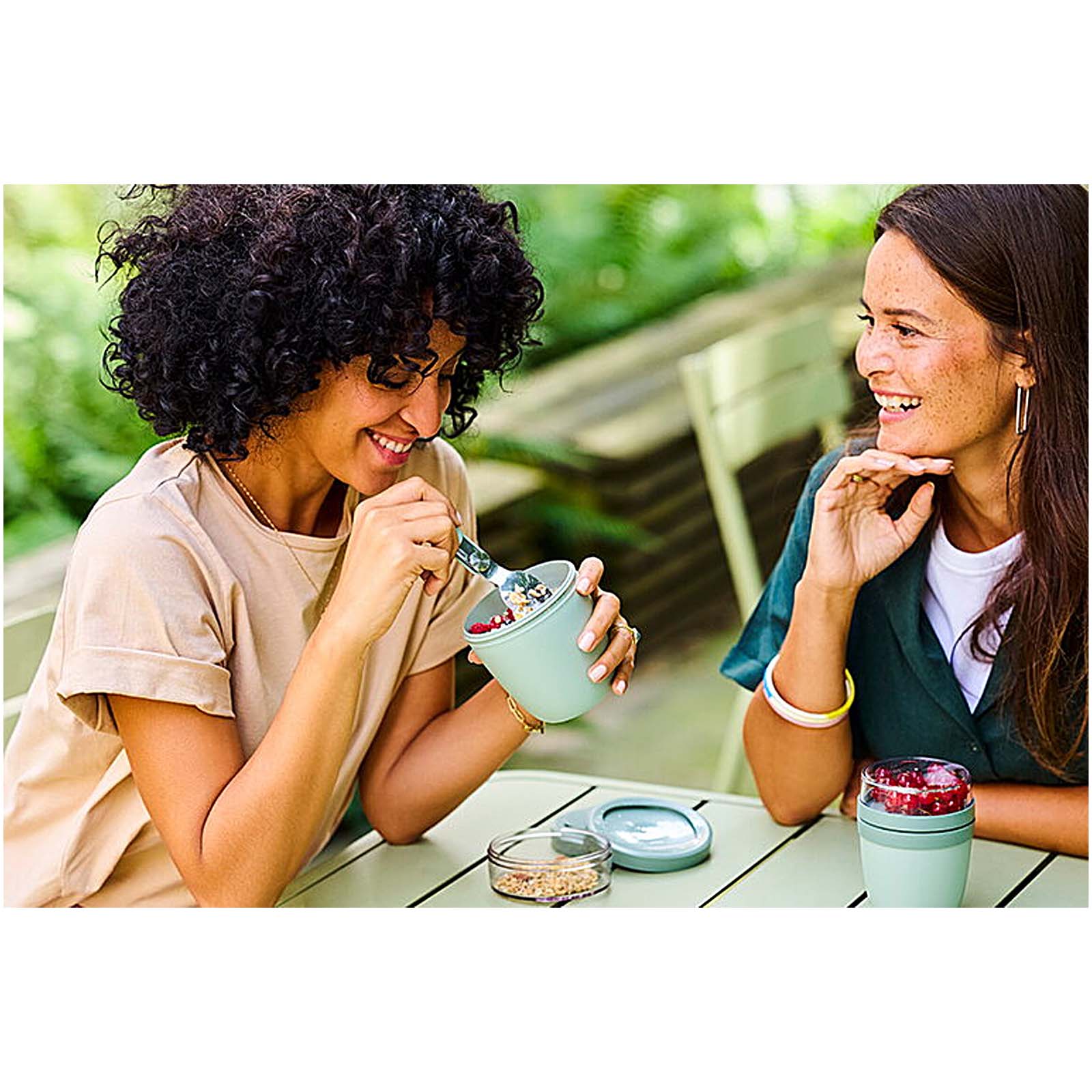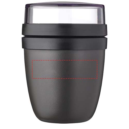 Ellipse Mini je ideální box na jídlo na různé svačiny, jako je jogurt s müsli nebo polévka s krutony. Díky dvěma praktickým přihrádkám v jedné pevné nádobě zůstanou vaše ingredience pěkně oddělené. Díky kompaktním rozměrům se snadno vejde do školní tašky a lze ho použít na rychlý a praktický oběd. Horní průhledná nádoba pojme 120 ml, což je ideální na přibližně 50 gramů müsli nebo ovoce, a spodní nádoba má objem 300 ml. Dobře těsní a je vhodná do myčky na nádobí. Neobsahuje BPA.