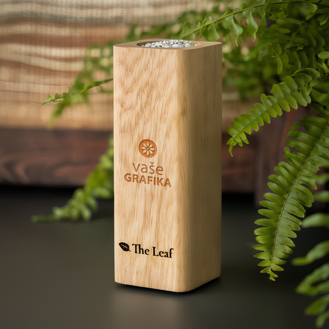 Personalizace na míru: V ceně difuzéru je personalizace gravírováním jednoduchého loga nebo reklamního sdělení, což z něj činí skvělý firemní dárek nebo marketingový nástroj. Dřevůně je dodávána v elegantní dárkové krabičce, kterou je možné za příplatek potisknout.