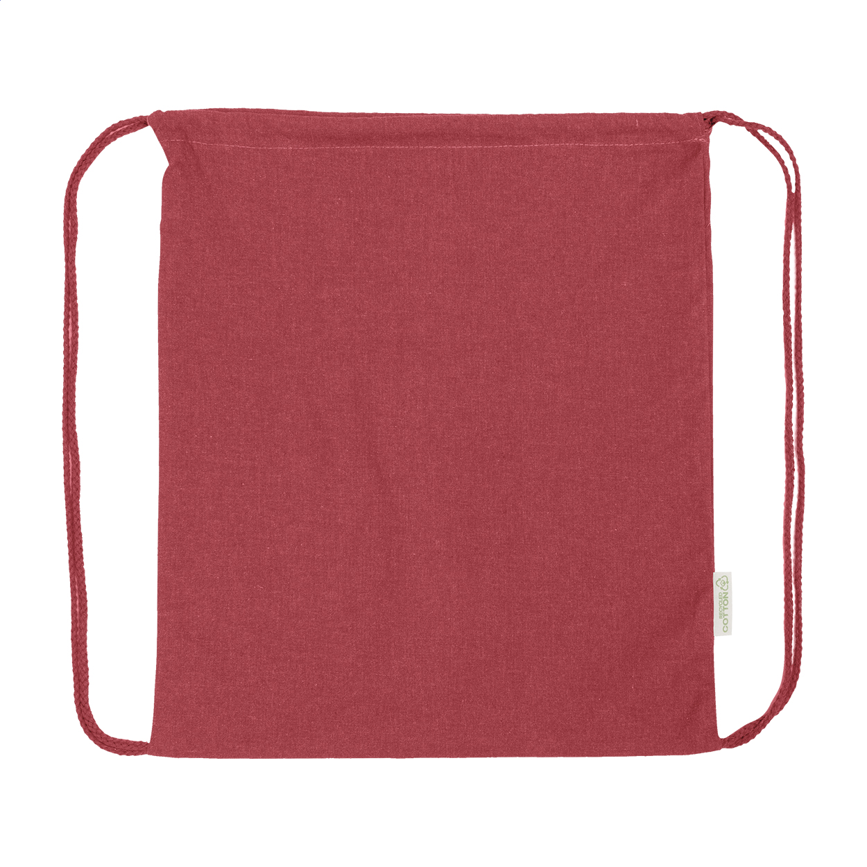 Vak se stahovací šňůrkou ze 70 % recyklované bavlny a 30 % polyesteru RPET, 140 g/m². S výrazným štítkem z recyklované bavlny.