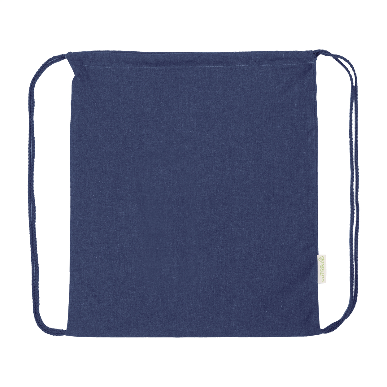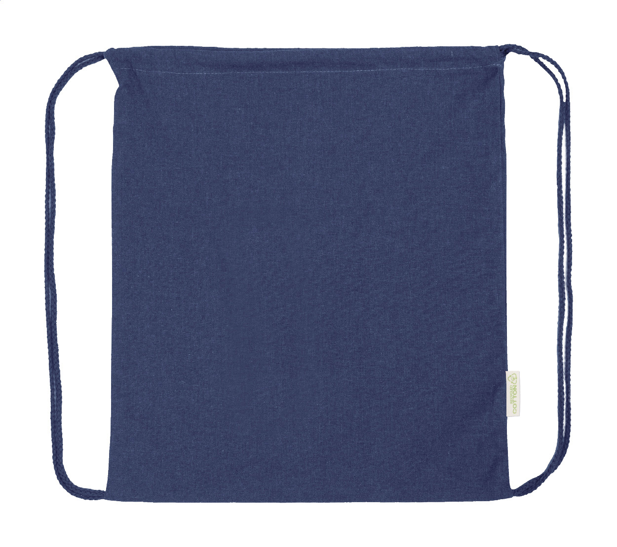 Vak se stahovací šňůrkou ze 70 % recyklované bavlny a 30 % polyesteru RPET, 140 g/m². S výrazným štítkem z recyklované bavlny.