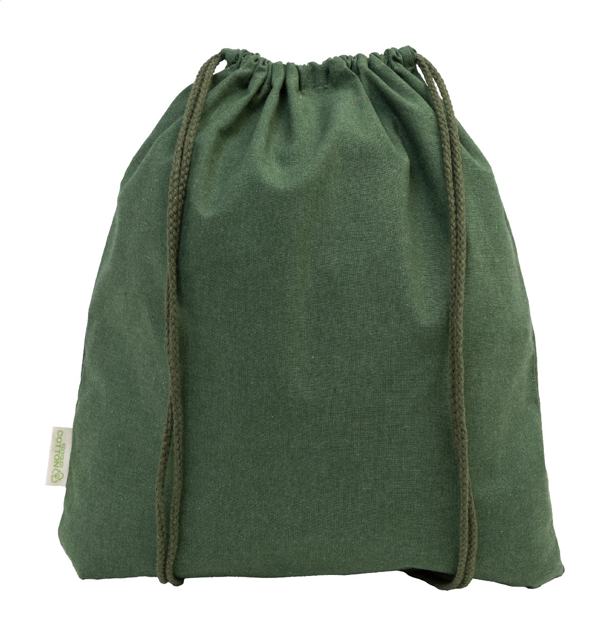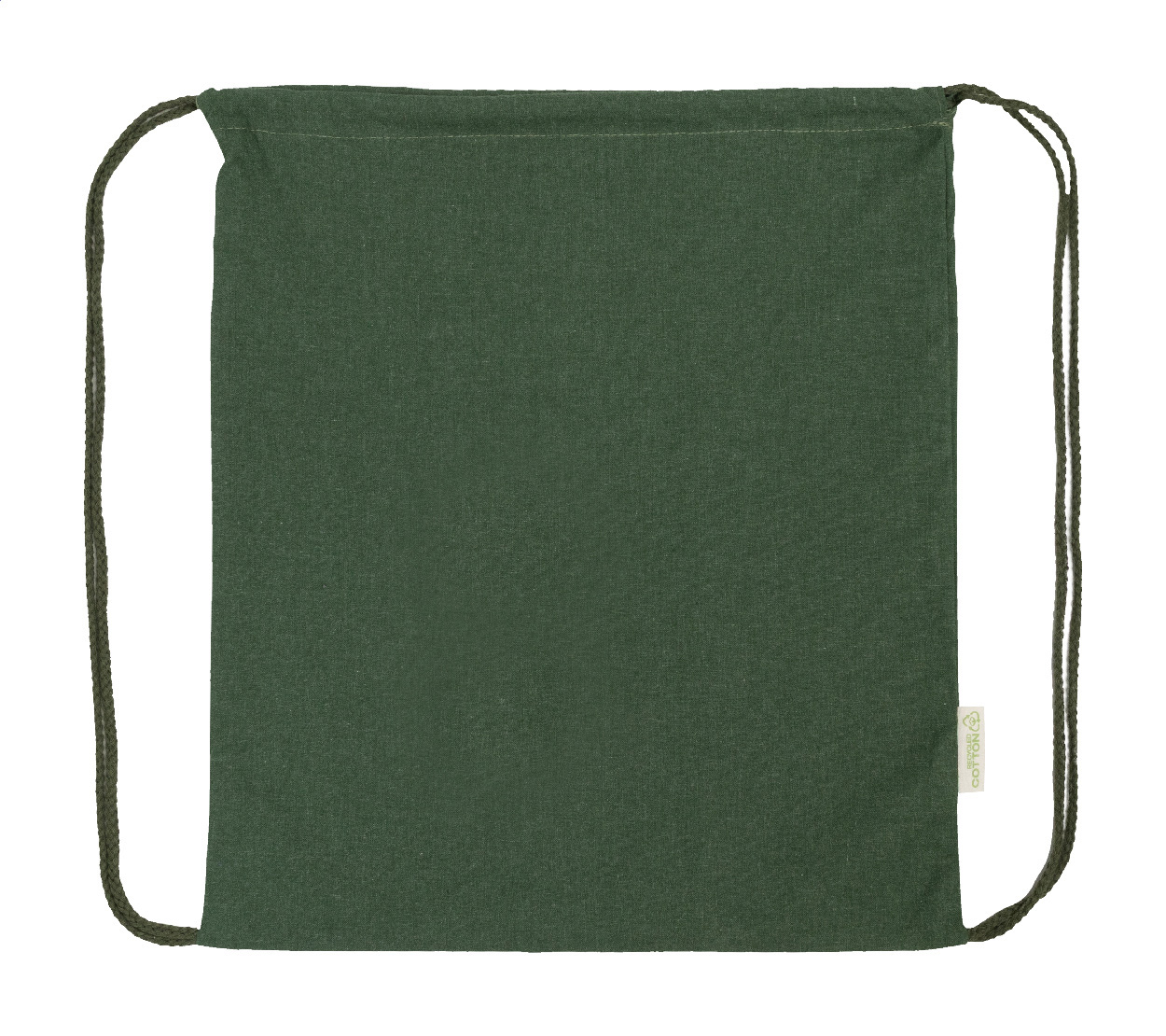 Vak se stahovací šňůrkou ze 70 % recyklované bavlny a 30 % polyesteru RPET, 140 g/m². S výrazným štítkem z recyklované bavlny.