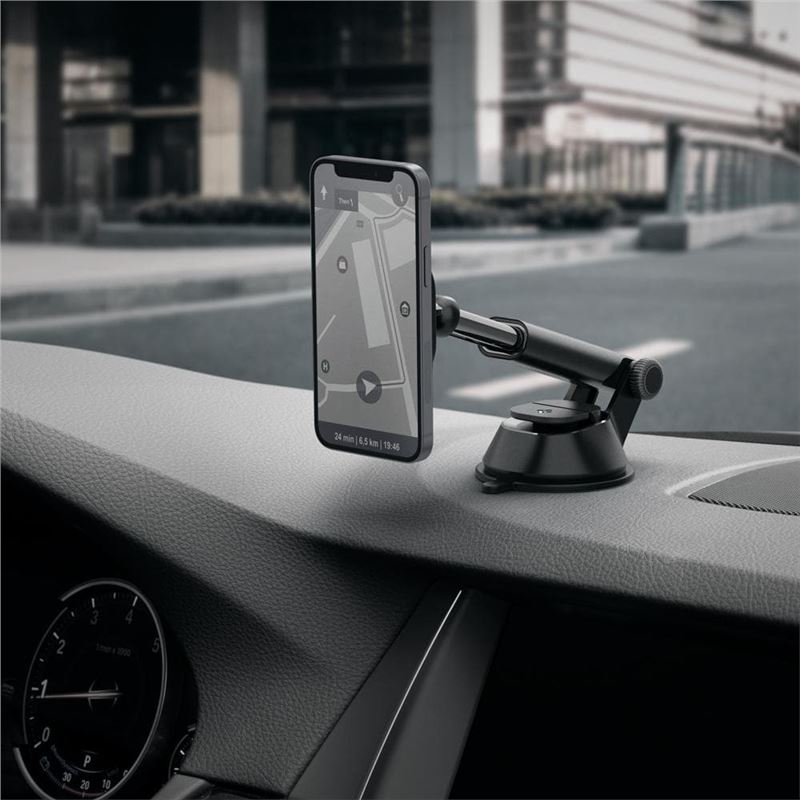 Magnetický držák na palubní desku využívá silné magnety plně kompatibilní s technologií MagSafe pro stabilní ukotvení nejnovějších modelů iPhone. Univerzální přísavný mechanismus umožňuje bezpečnou instalaci na texturované povrchy palubních desek i na hladké čelní sklo.