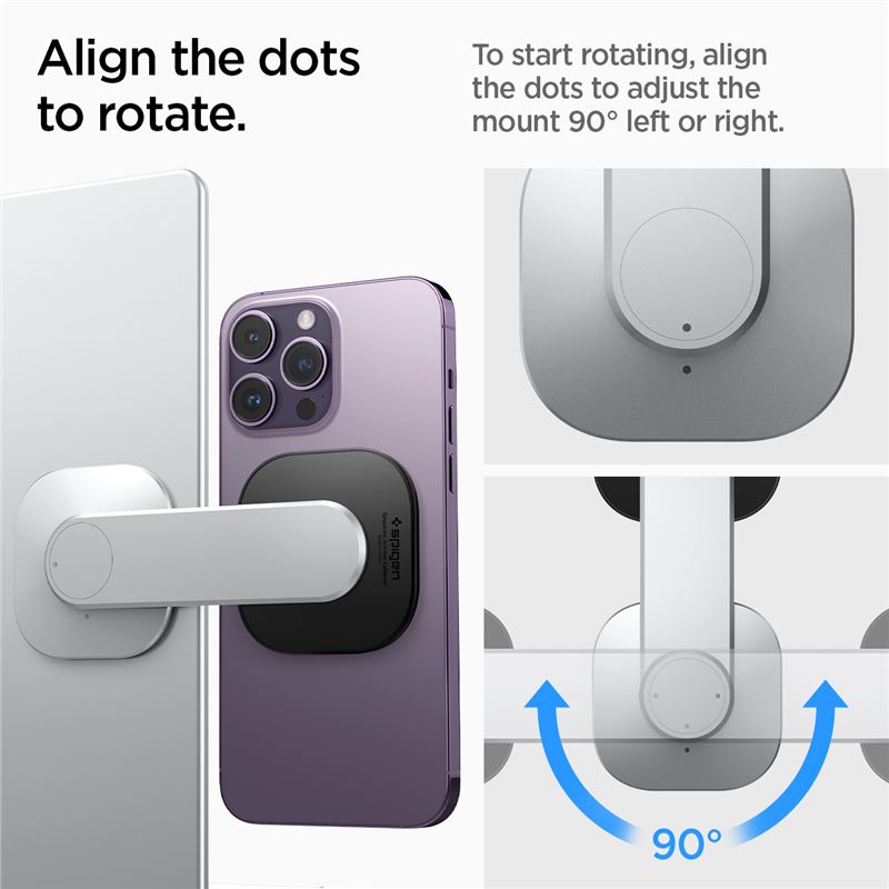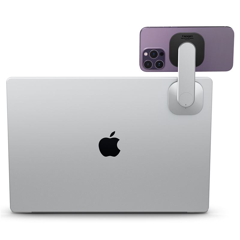 Skládací hliníkový držák na monitor nebo notebook využívá magnetickou technologii MagFit pro bezpečné zavěšení iPhonu 12 a všech novějších modelů. Štíhlé kovové rameno lze snadno polohovat, což umožňuje využívat telefon jako sekundární obrazovku nebo pro videohovory v úrovni očí.