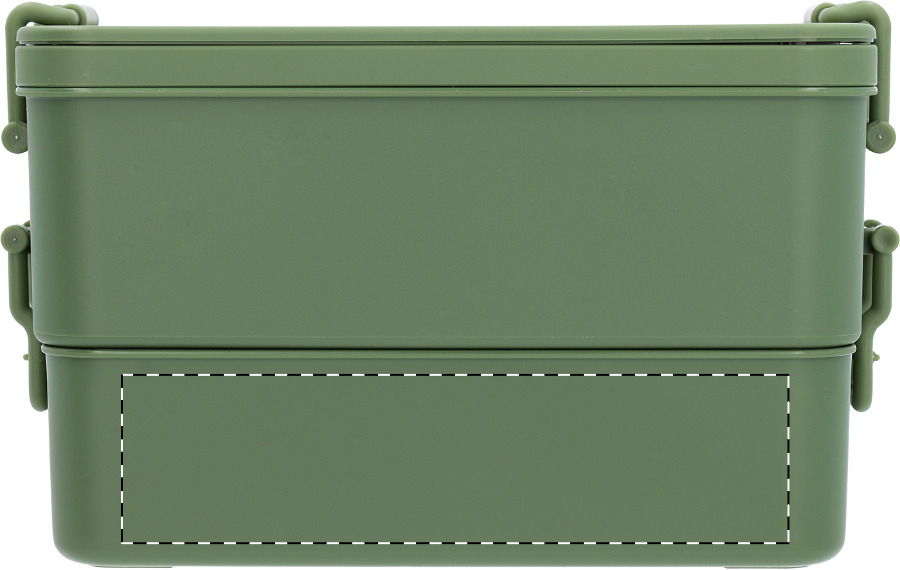 Přináší vlastní příborovou sadu včetně nože, vidličky a lžíce, takže odpadá nutnost nosit náčiní odděleně. Pevná uzavírací přezka udržuje obě patra bezpečně u sebe a stohovatelný systém minimalizuje nároky na úložný prostor v tašce.