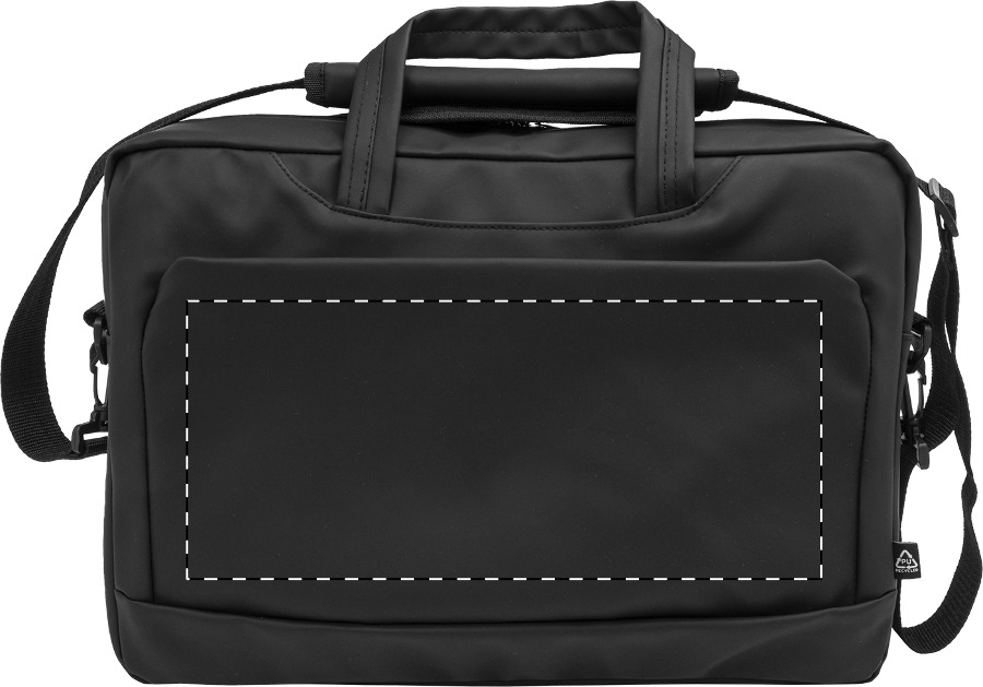 Voděodolná brašna na dokumenty a notebook z měkké recyklované PU kůže s přihrádkou na zip, přední kapsou na zip, nastavitelným ramenním popruhem a polstrovanou přihrádkou na notebook (15"). S výrazným štítkem z recyklované PU.